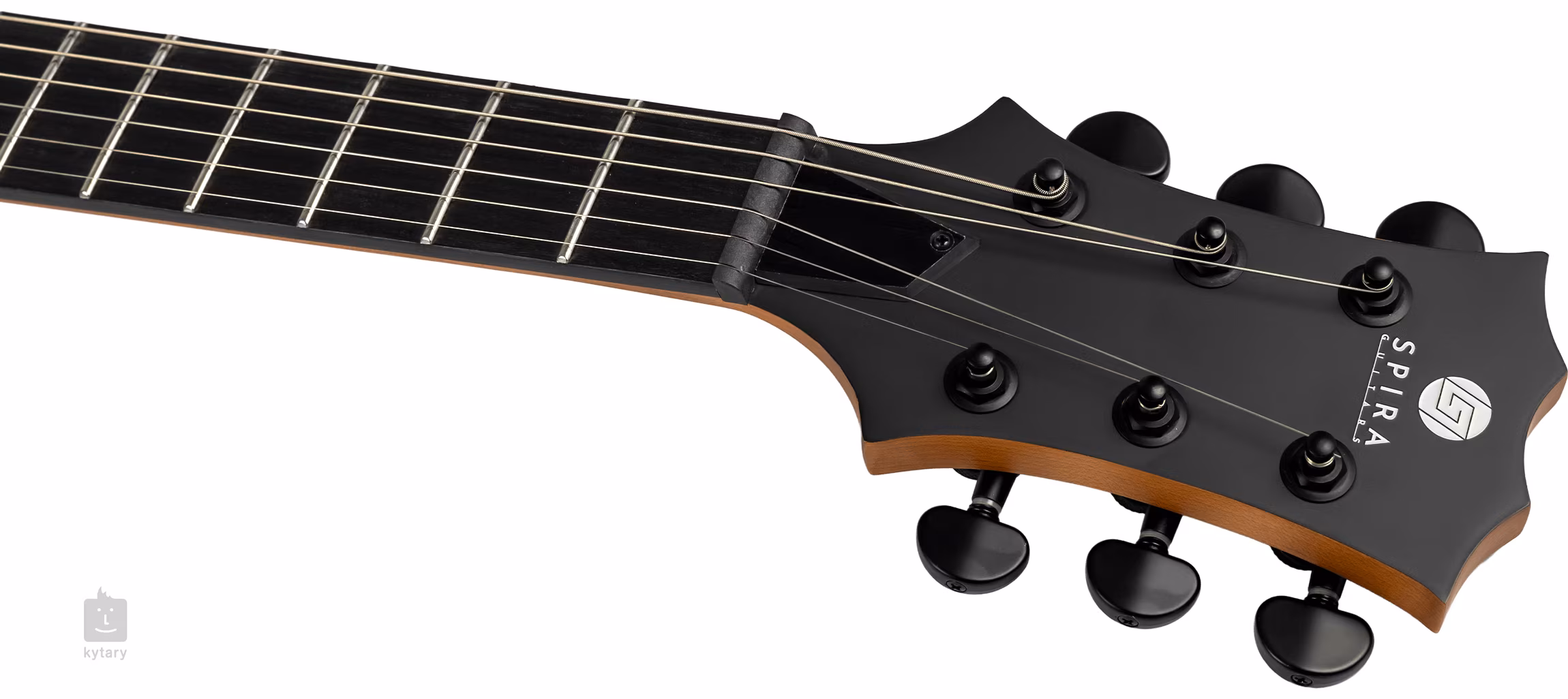 Dwa autorskie humbuckery Spira Villain z ceramicznymi magnesami i mocniejszym wyjściem nadają gitarze soczyste brzmienie, które szczególnie docenisz w ustawieniach high-gain. Ustawieniami brzmienia można manipulować za pomocą standardowych pokręteł. Struny zamontowane są w firmowych mechanizmach blokujących oraz w strunniku i strunociągu. Stylowe wykończenie podkreśla matowy lakier i czarny osprzęt.