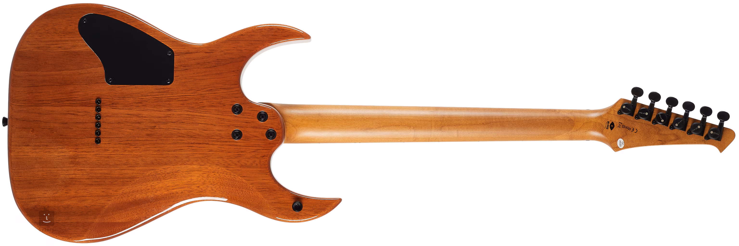 Dwa autorskie humbuckery Spira Villain z ceramicznymi magnesami i mocniejszym wyjściem nadają gitarze soczyste brzmienie, które docenisz szczególnie w ustawieniach high-gain. Ustawieniami brzmienia można manipulować za pomocą standardowych pokręteł. Struny są montowane w firmowych mechanizmach blokujących i przez solidny mostek przez korpus. Stylowe wykonanie podkreśla czarny osprzęt.