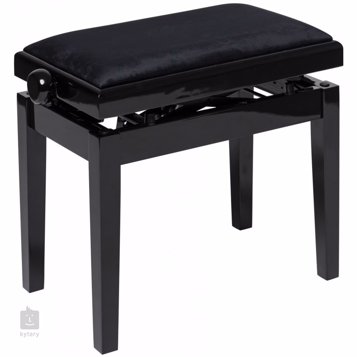 Stołek do fortepianu klasycznego z unikalną hydrauliczną regulacją wysokości i wygodnym siedziskiem pokrytym winylem. Siedziska są dostępne w wykończeniu błyszczącym i matowym oraz w kilku kolorach pasujących do najbardziej popularnych kolorów fortepianów i pianin.