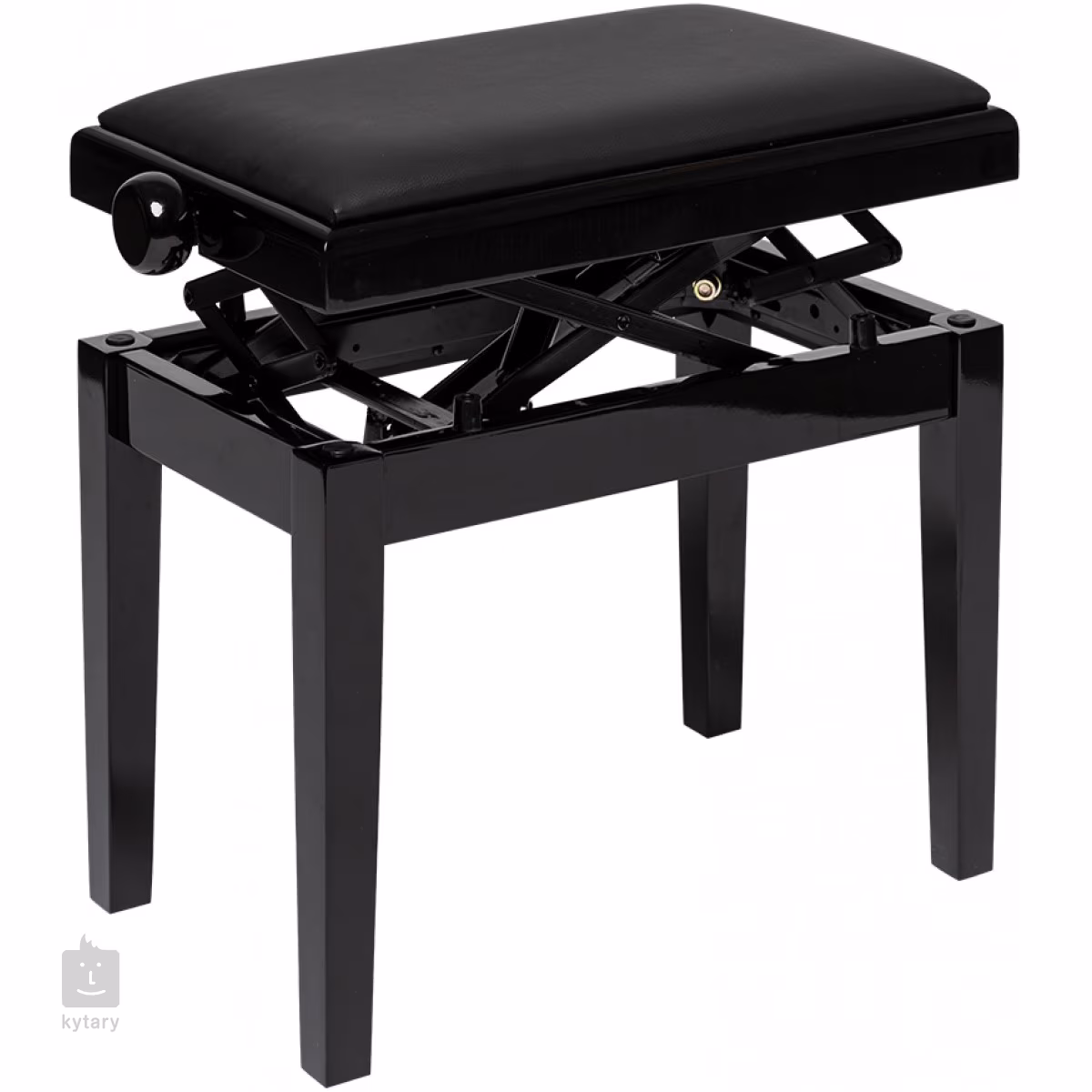 Stołek do fortepianu klasycznego z unikalną hydrauliczną regulacją wysokości i wygodnym siedziskiem pokrytym winylem. Siedziska są dostępne w wykończeniu błyszczącym i matowym oraz w kilku kolorach pasujących do najbardziej popularnych kolorów fortepianów i pianin.