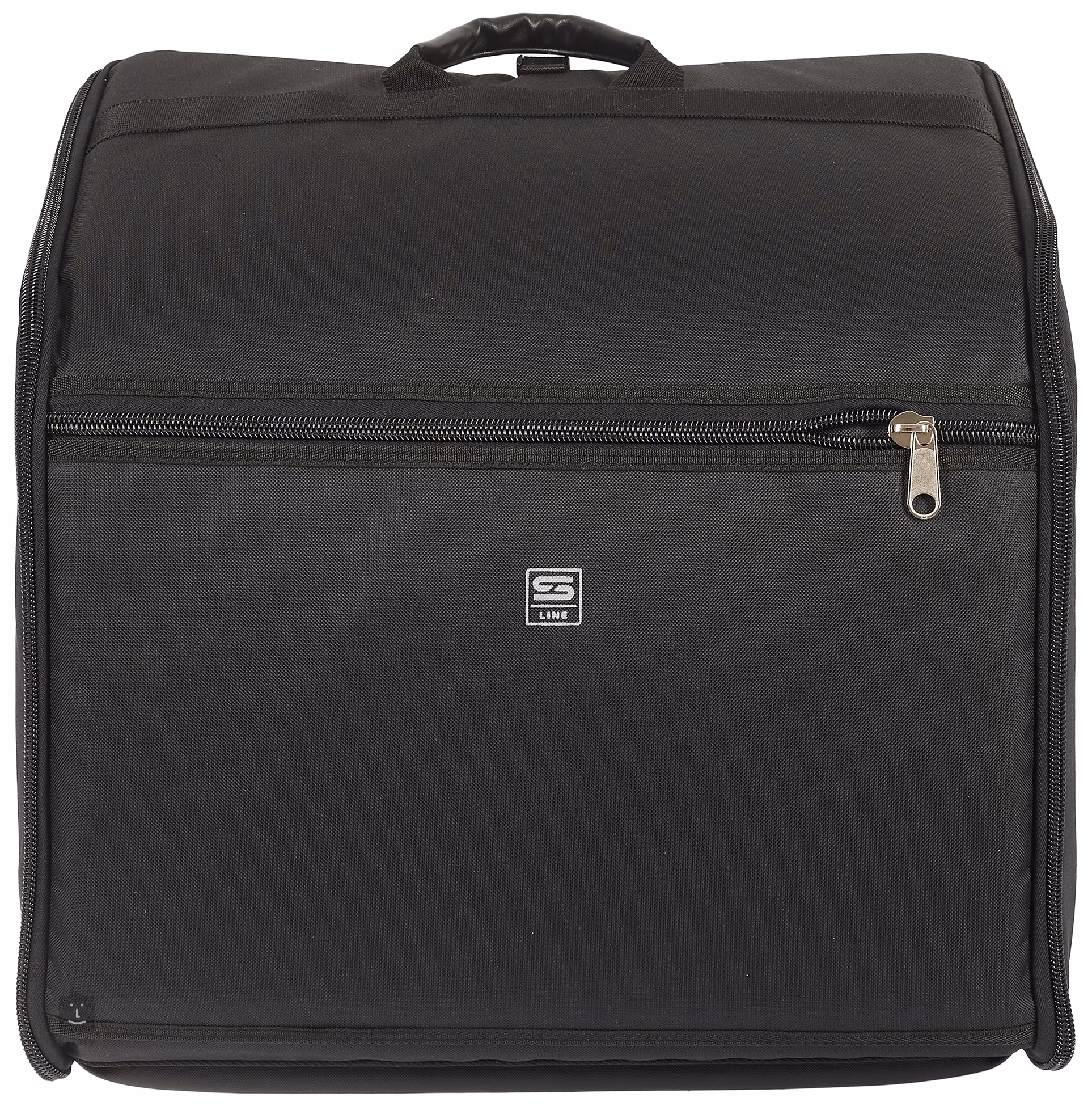 Pokrowiec na akordeon Stefy Line AB200 - 72 posiada zewnętrzną powłokę wykonaną z wodoodpornego poliestru (Poly 600D), wnętrze z wyściółką o grubości 20 mm (utwardzony polietylen), kieszeń do przechowywania małych akcesoriów, uchwyt i paski na ramię, dzięki czemu można go nosić jako plecak.