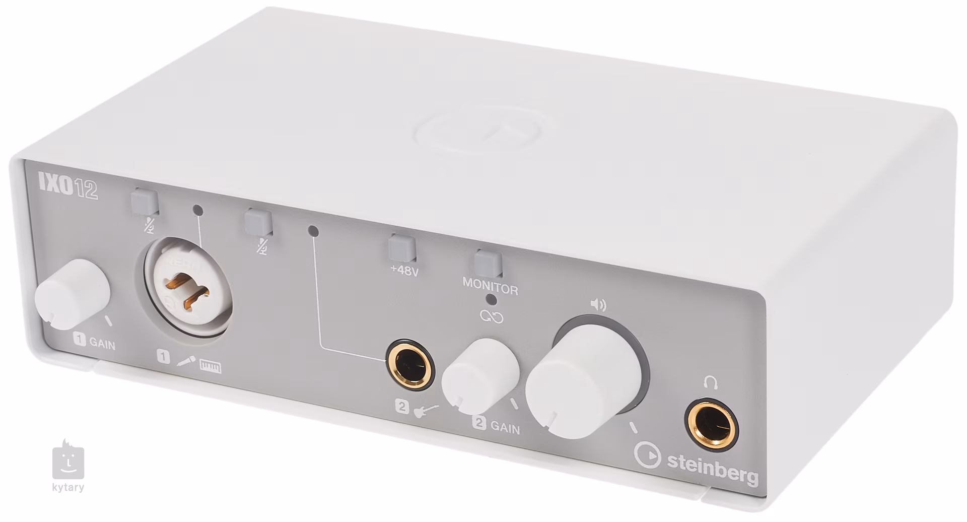 Steinberg IXO12 to dwukanałowy interfejs audio z dwoma wejściami, dwoma wyjściami i łącznością USB-C.