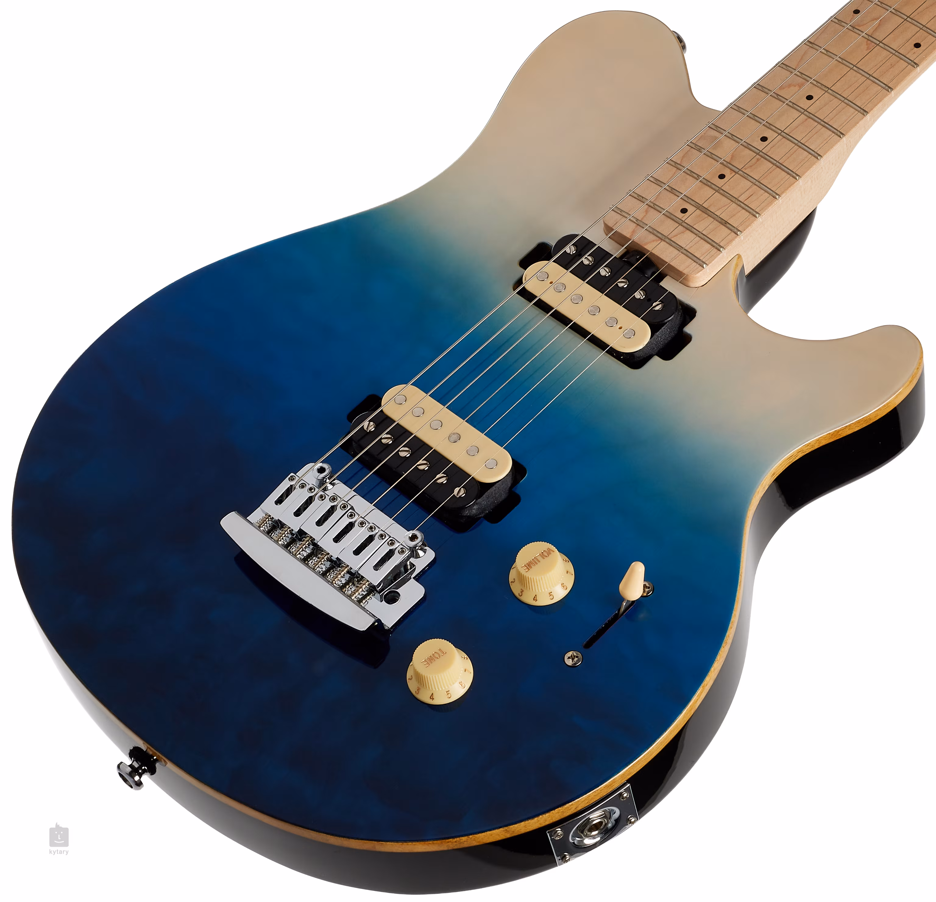 Dokładnie tak jest w przypadku nowoczesnego modelu Axis AX3QM Spectrum Blue z pojedynczym nacięciem. Korpus gitary wykonany z azjatyckiego jabonu ozdobiony jest pikowaną okleiną klonową. Ziarno klonu jest podkreślone przez wykończenie Spectrum Blue. Przyjemny, asymetryczny profil gryfu pozwala płynnie przesuwać się po całej powierzchni klonowej podstrunnicy wyposażonej w dwadzieścia dwa progi.