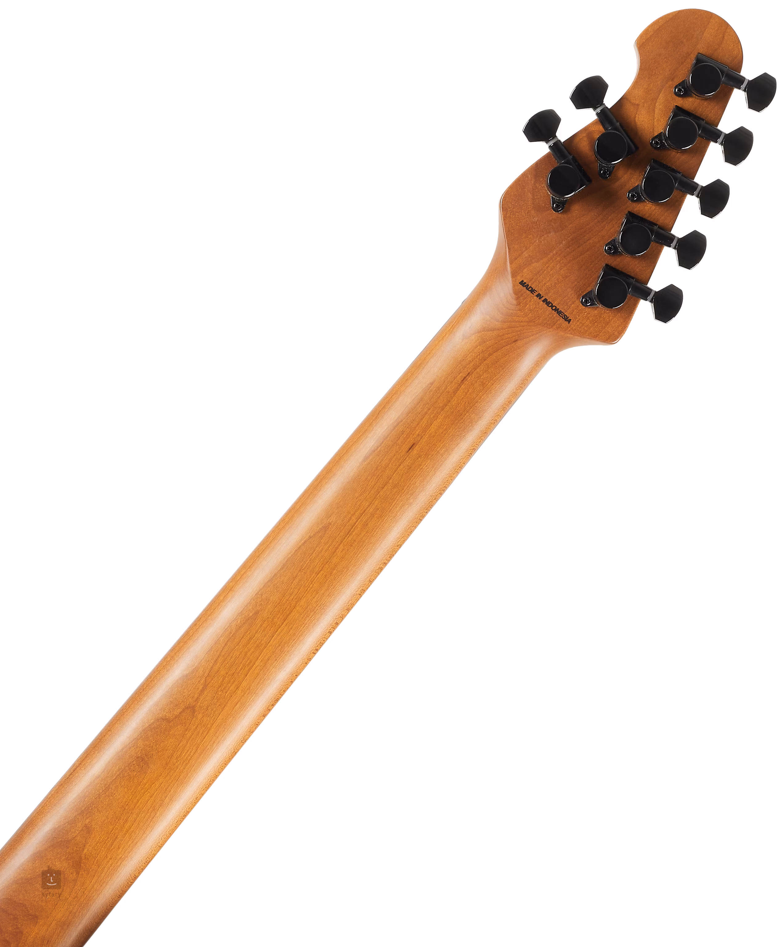 Szyjka z palonego klonu jest przyklejona do hebanowej podstrunnicy wyposażonej w dwadzieścia cztery progi Medium Jumbo ze stali nierdzewnej. Shreddery i szybcy gracze docenią bardziej płaski promień podstrunnicy.