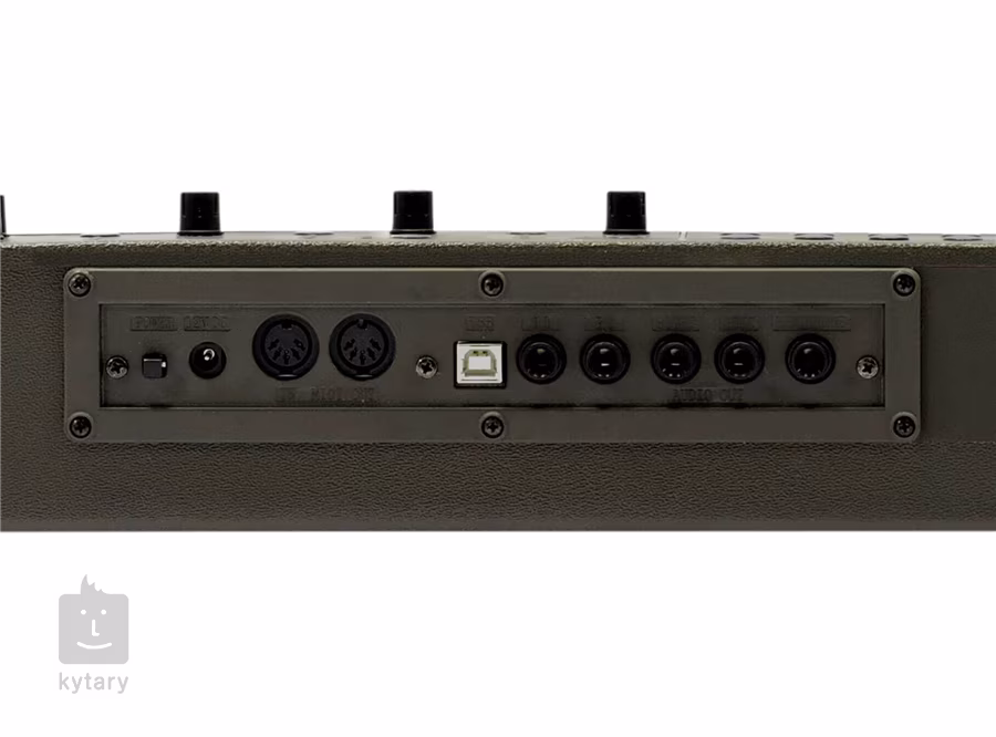 • Wyjścia 2x Jack 6.3 mm(Audio), 1x Jack 6.3mm TRS (Phones) MIDI 5-pin DIN, USB