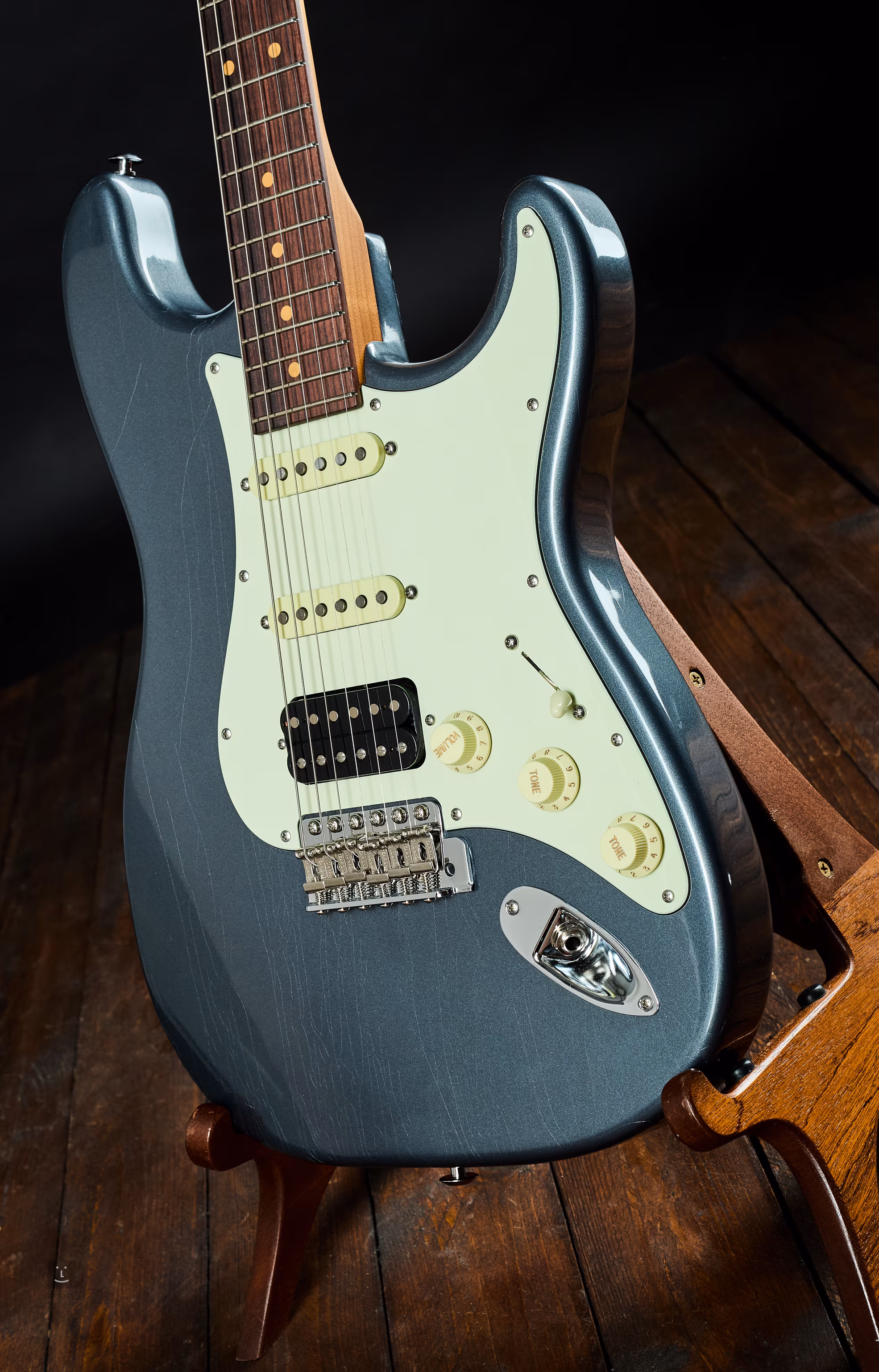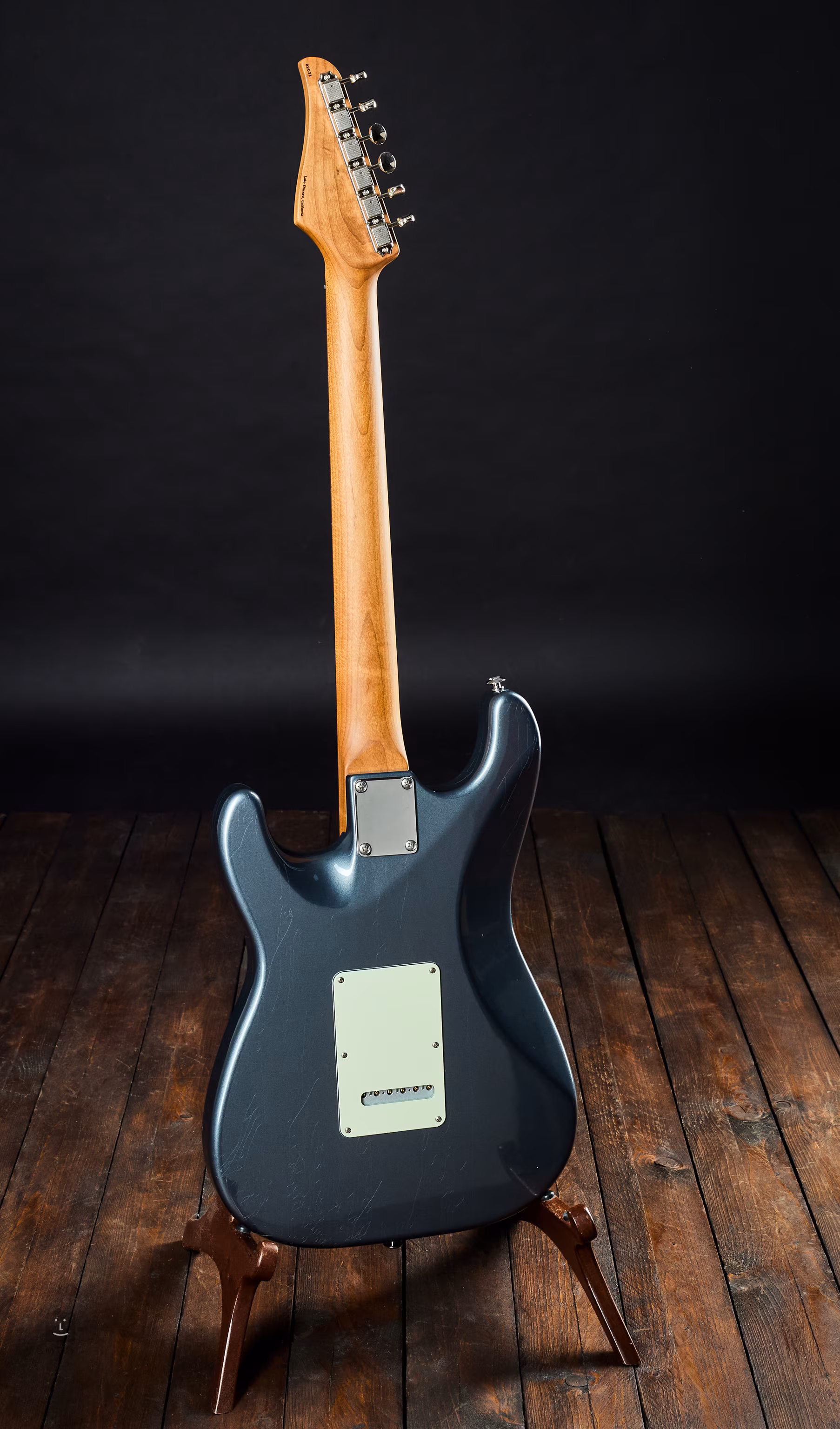 Suhr Limited Edition Classic S Vintage HSS Charcoal Frost to gitara elektryczna z limitowanej serii Classic S Vintage. Posiada trzyczęściowy olchowy korpus pokryty lakierem z całkowicie subtelnymi elementami starzenia. Szyjka z palonego klonu o profilu 60's C Vintage Standard (.810"-.930") jest przyklejona do palisandrowej podstrunnicy wyposażonej w średnie niklowe progi (Medium Nickel .055 "x.090"). Złożony promień podstrunnicy (9-12 cali) zapewnia doskonałą grywalność i wykończenie na całej podstrunnicy.