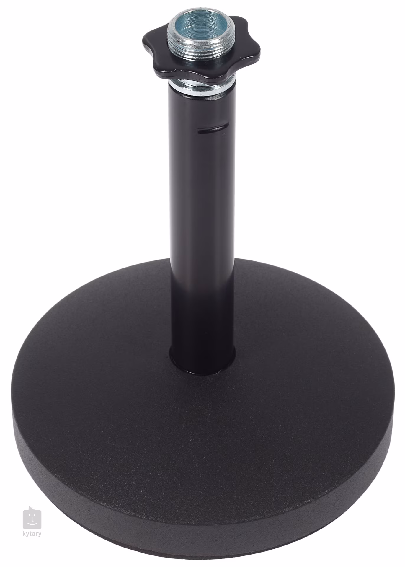 Solidny stojak stołowy z bardzo stabilną metalową podstawą. Jego wysokość wynosi 12 cm i posiada gwint 5/8".