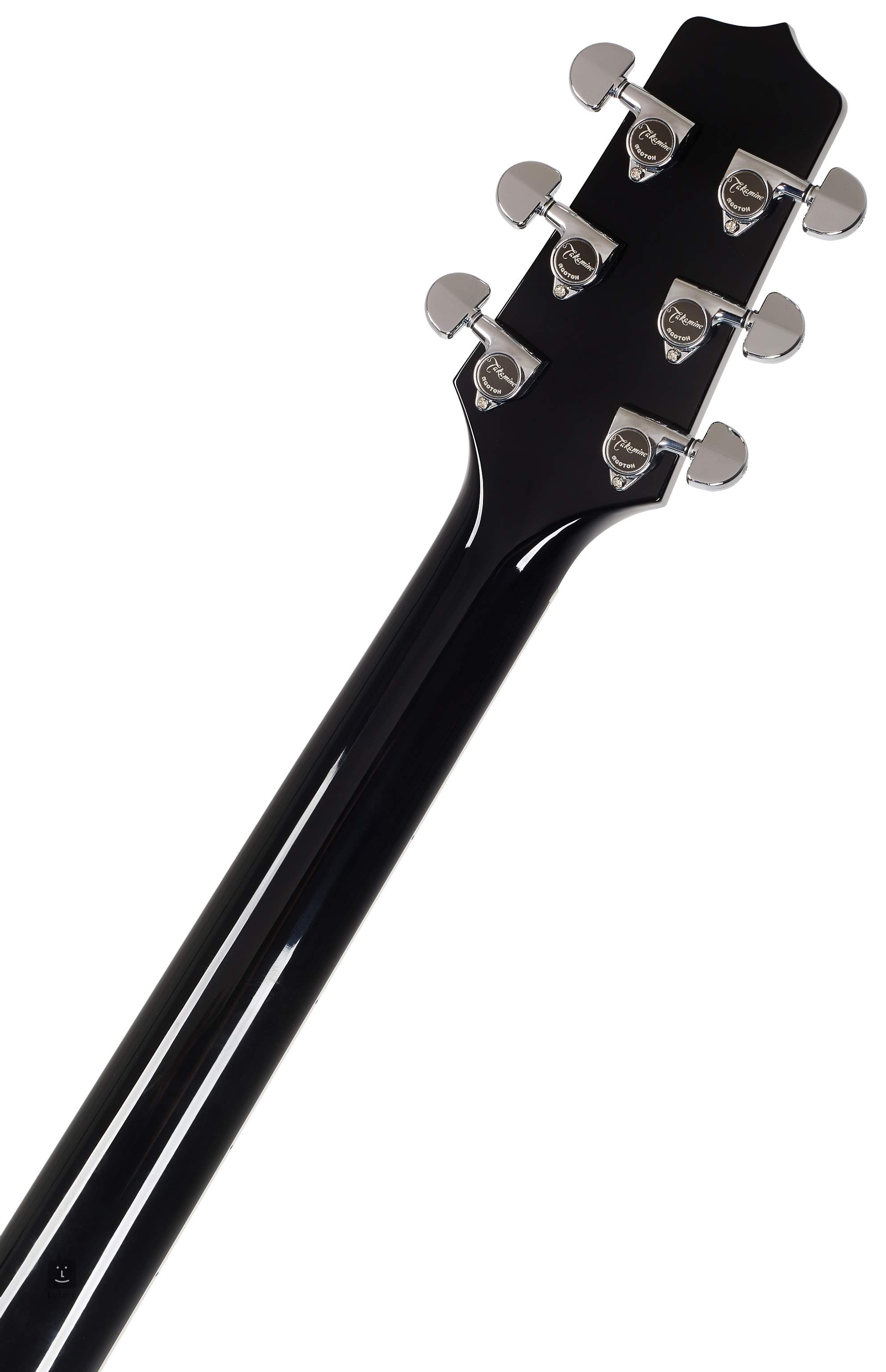 Struny są utrzymywane w chromowanych, odlewanych maszynkach do strojenia i palisandrowej podstrunnicy za pomocą kościanej podstrunnicy i siodełka. Stylowy wygląd gitary podkreśla praktyczny pickguard, jasny binding, rozeta, płatki śniegu i logo firmy na główce.