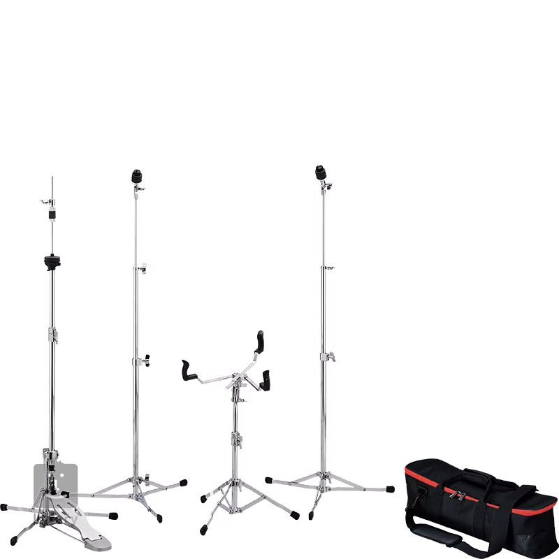 Kompletny zestaw osprzętu z serii Tama Classic zachwyci szczególnie fanów vintage'owego designu i minimalistycznego, a zarazem funkcjonalnego podejścia. W zestawie znajduje się para prostych statywów pod talerze Tama HC52F, statyw pod hi-hat HH55F oraz statyw pod werbel HS50S. Wszystkie elementy wykonane są z wysokiej jakości materiałów, posiadają regulację wysokości i są składane w celu łatwego transportu, który ułatwia dołączona do zestawu poręczna torba o wymiarach 67 x 18 x 19 centymetrów.