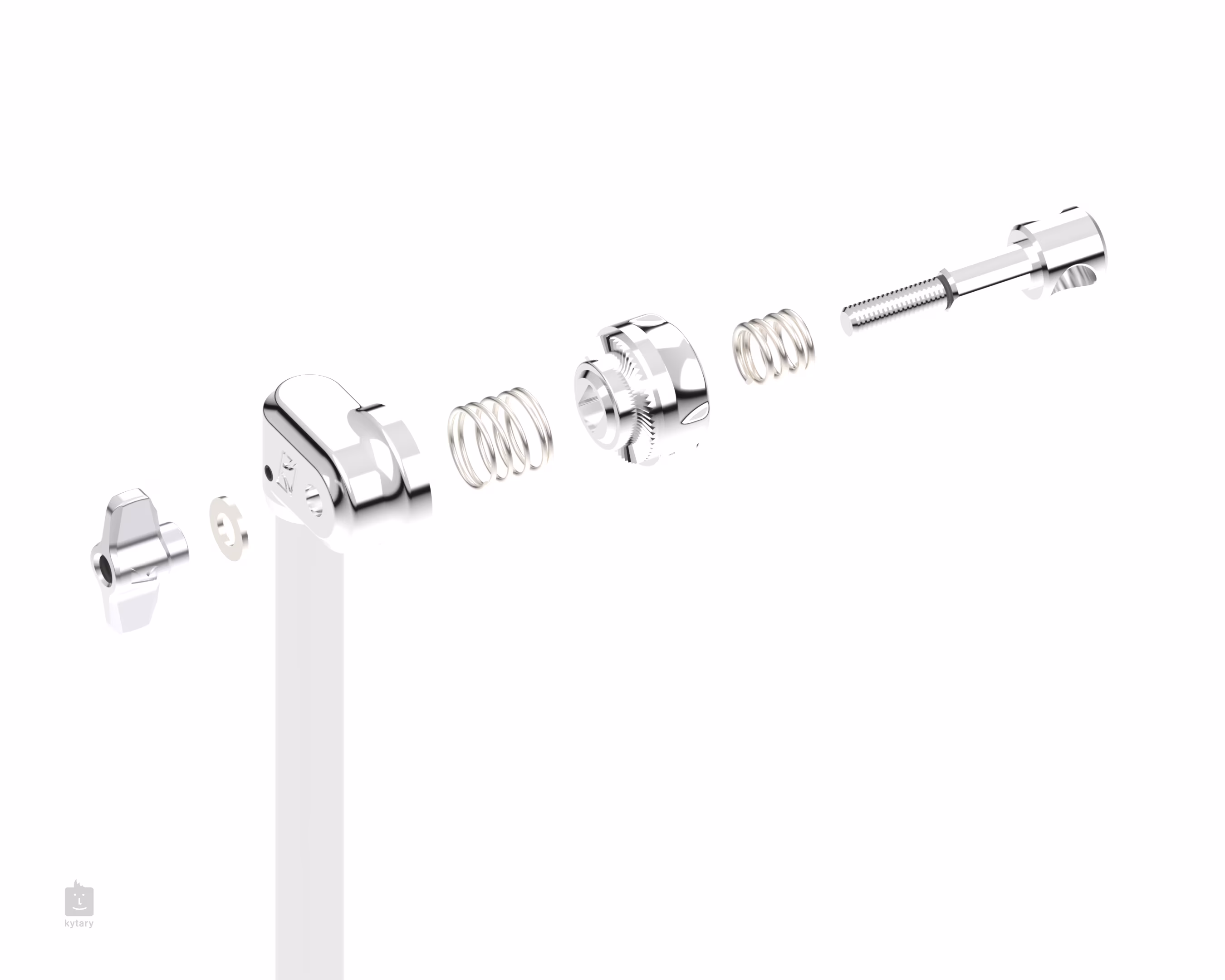 Kluczowym elementem jest innowacyjny Duo-Lock Boom Tilter, który umożliwia jednoczesną regulację kąta i długości ramienia. Dzięki temu pozycjonowanie talerza jest szybkie, intuicyjne i precyzyjne – idealne zarówno do użytku koncertowego, jak i studyjnego. Stabilność podczas gry zapewniają specjalne gumowe nóżki Anti-Walk Rubber Feet, które minimalizują niepożądane ruchy statywu nawet podczas dynamicznej i energicznej gry.