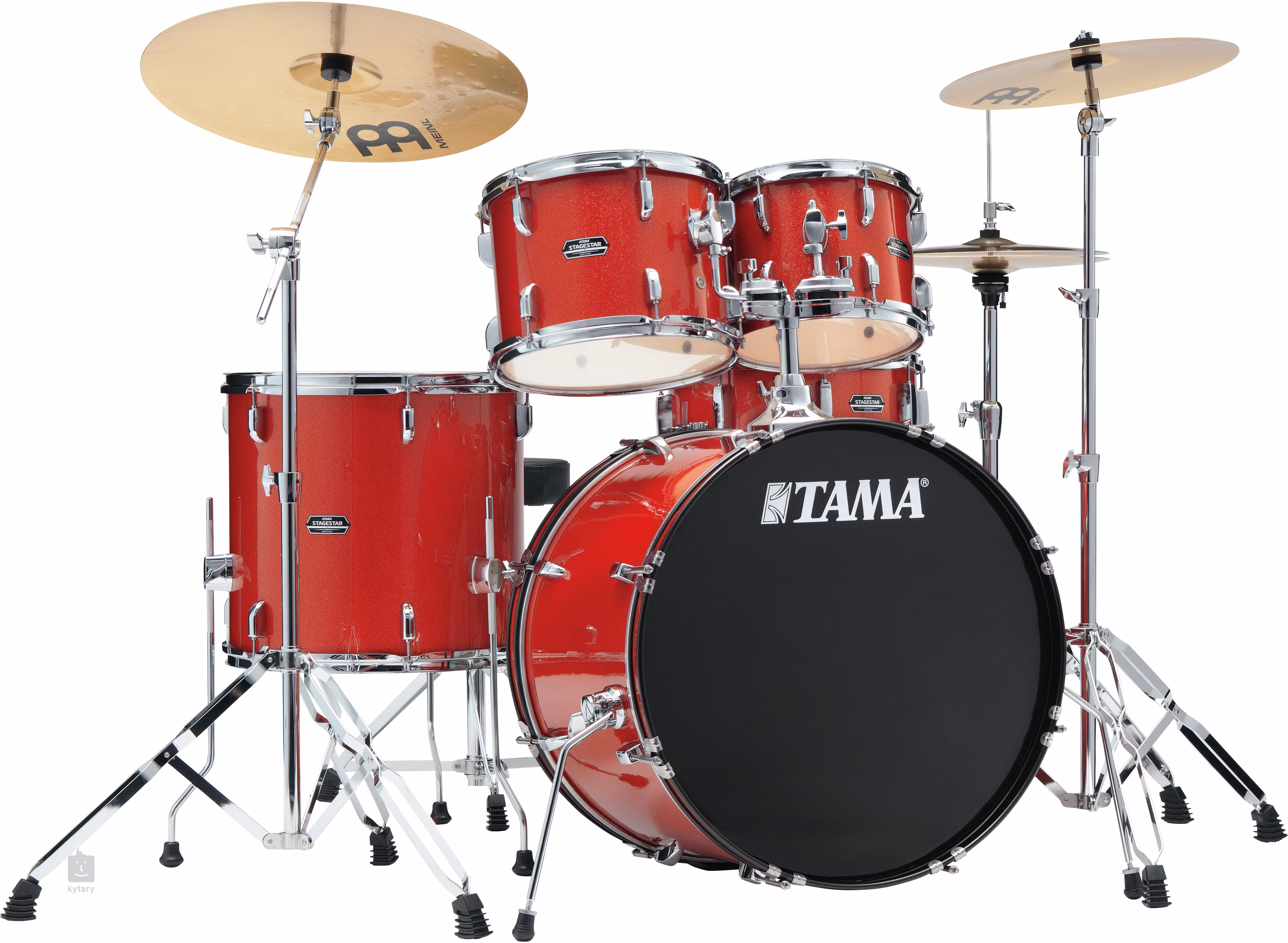 Częścią zestawu Tama ST52H6 jest również kompletny osprzęt wyposażony w podwójnie wzmocnione statywy, które zapewniają wysoką stabilność nawet podczas energicznego grania. Pedał perkusyjny posiada podwójną przekładnię łańcuchową i możliwość regulacji kąta beatera, co pozwala na precyzyjne dostrojenie reakcji do stylu gry. Pakiet uzupełnia zestaw talerzy Meinl Cymbals BCS, w którym znajdziesz 20'' Ride, 16'' Crash i 14'' Hi-hat.