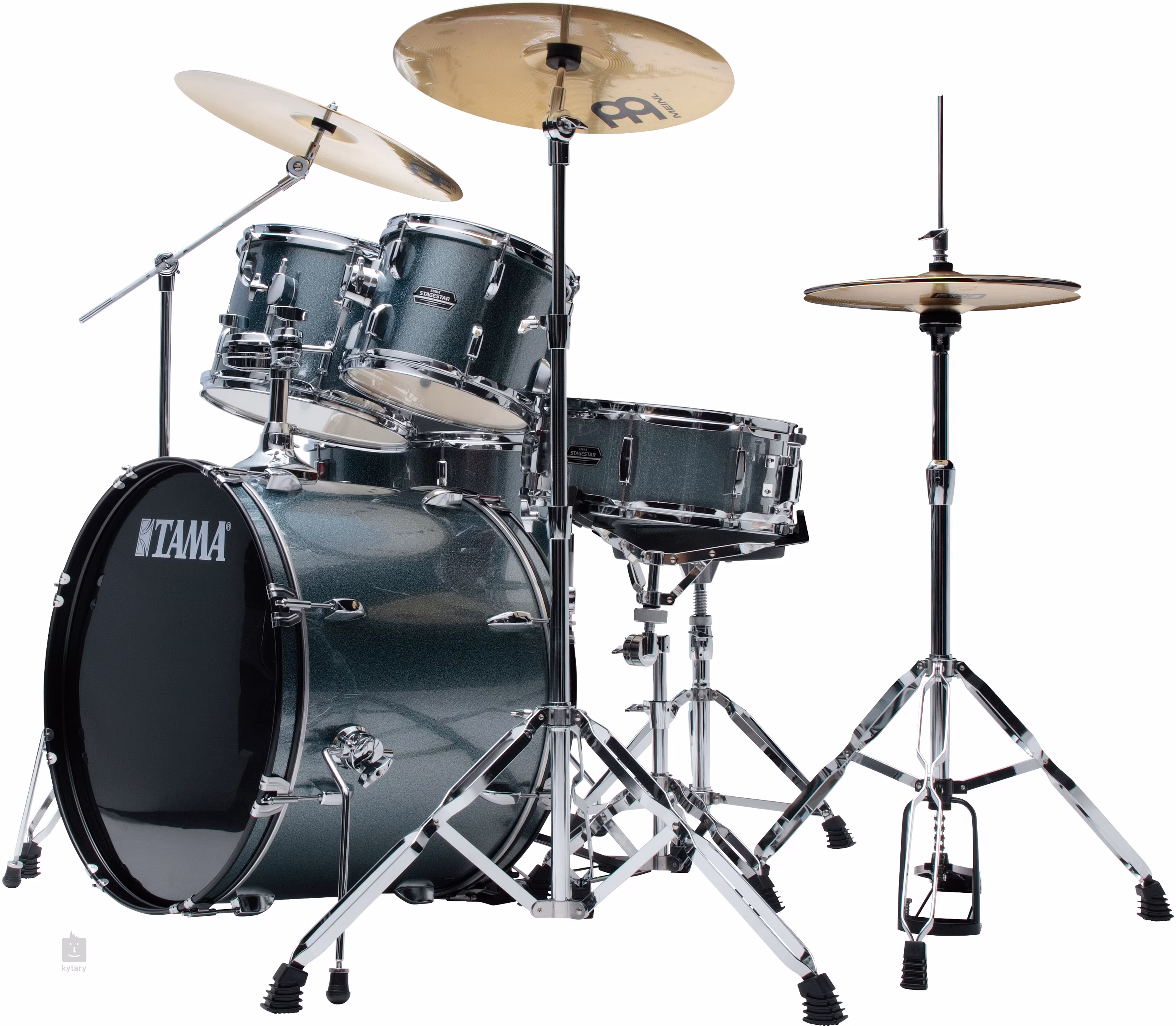 Częścią zestawu Tama ST52H6 jest również kompletny osprzęt wyposażony w podwójnie wzmocnione statywy, które zapewniają wysoką stabilność nawet podczas energicznego grania. Pedał perkusyjny posiada podwójną przekładnię łańcuchową i możliwość regulacji kąta beatera, co pozwala na precyzyjne dostrojenie reakcji do stylu gry. Pakiet uzupełnia zestaw talerzy Meinl Cymbals BCS, w którym znajdziesz 20'' Ride, 16'' Crash i 14'' Hi-hat.