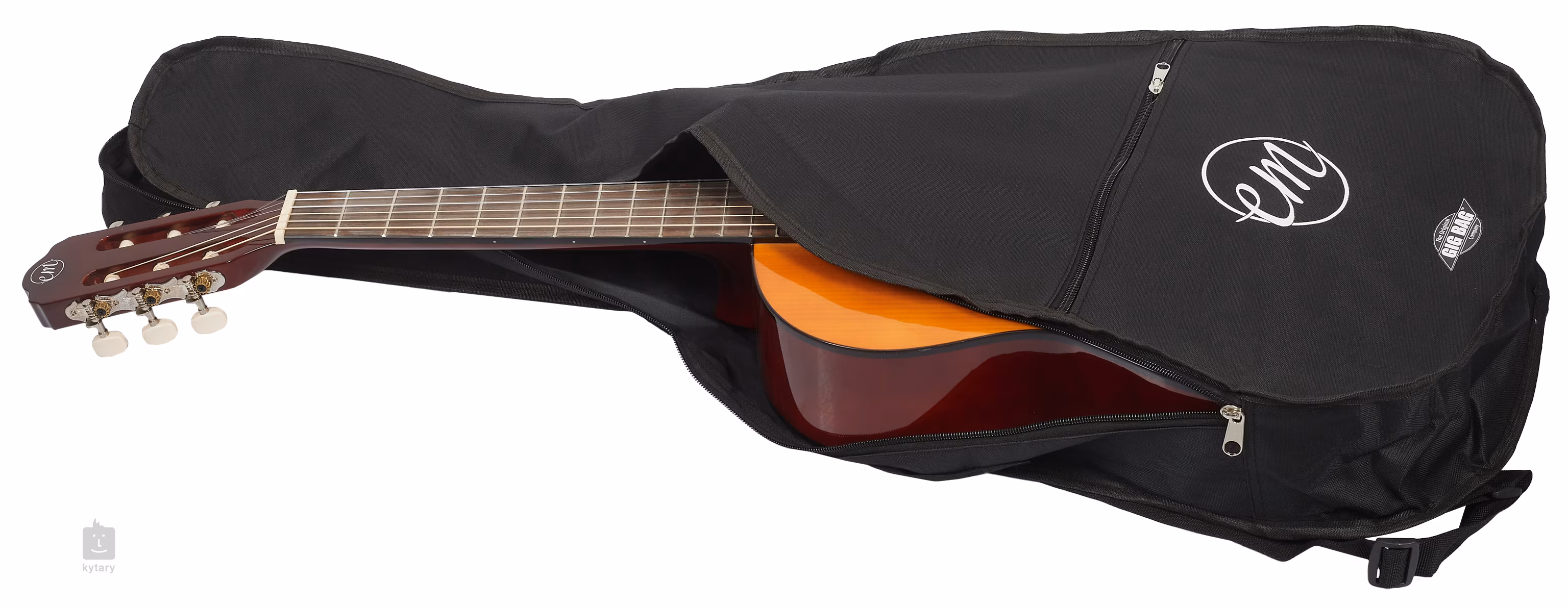 EMC2 to niedroga gitara klasyczna Tanglewood w rozmiarze 3/4, odpowiednia dla dzieci i młodzieży. Posiada laminowany korpus składający się z laminowanego świerkowego frontu oraz laminowanego lipowego tyłu i boków. Podstrunnica i główka wykonane są z drewna kompozytowego (Techwood). Stylowy wygląd podkreślają mechanizmy strojenia na główce w klasycznym kształcie oraz ozdobna rozeta. Gitara dostarczana jest w wyściełanym futerale.