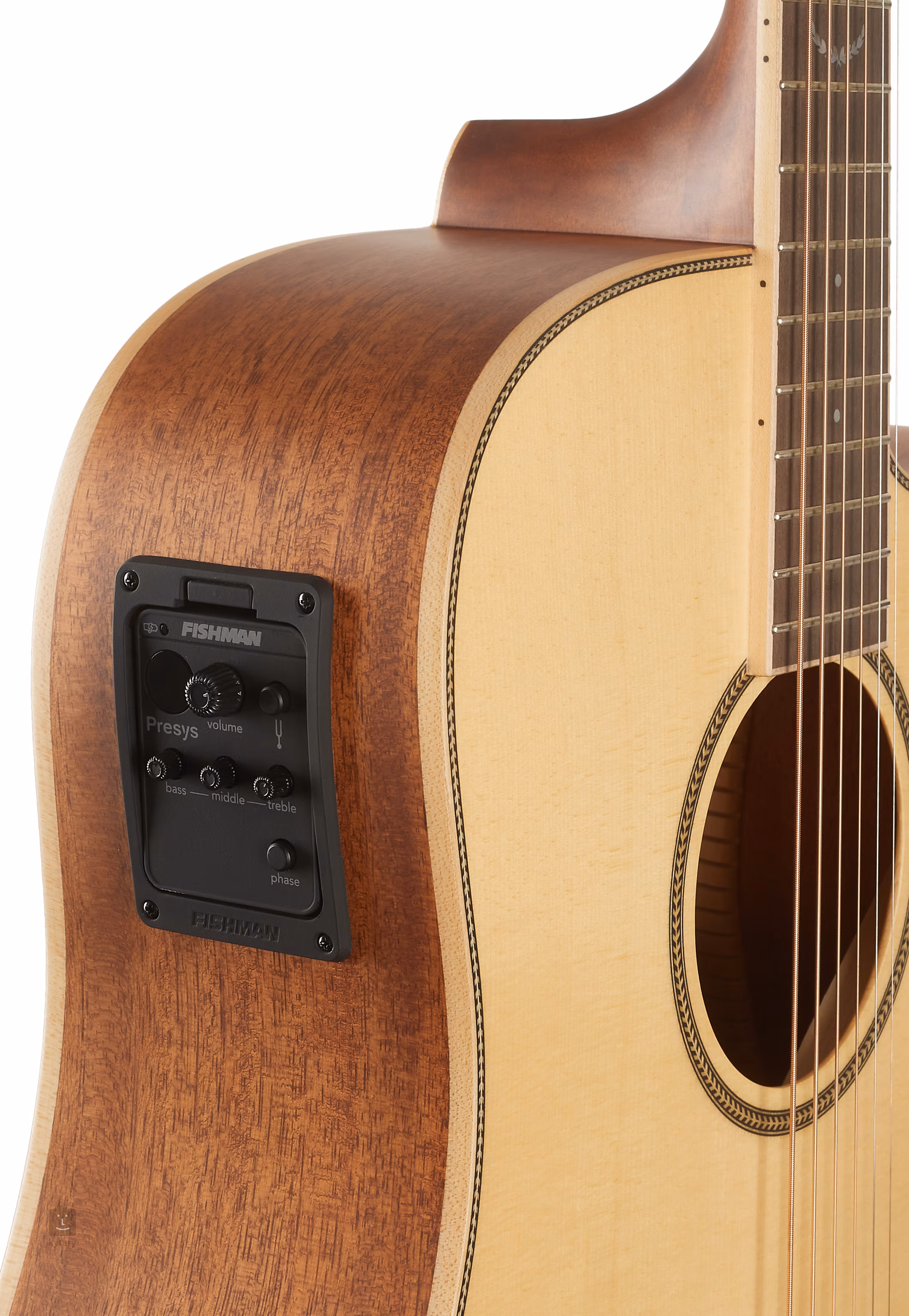 Wzmocnienie dźwięku zapewnia aktywny przedwzmacniacz Fishman Presys z trójpasmowym korektorem i zintegrowanym tunerem.