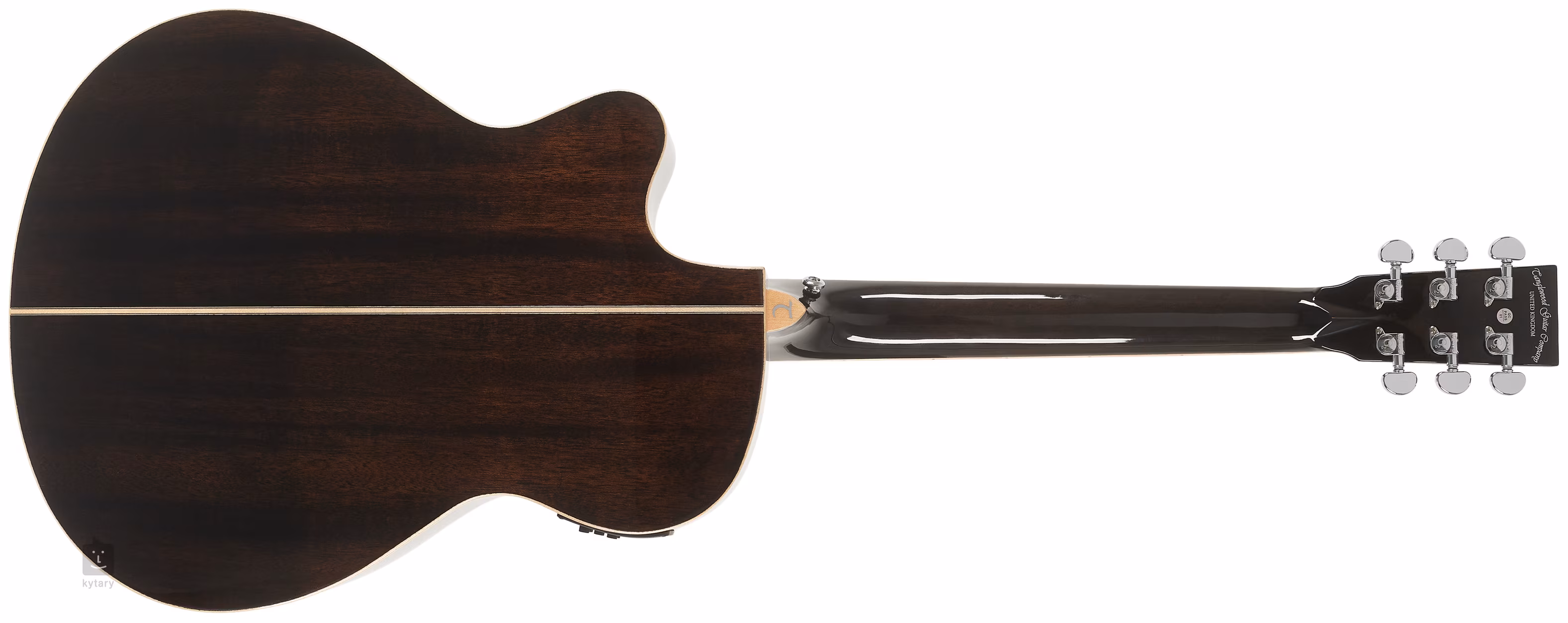 Brytyjska marka Tanglewood oferuje niedrogie gitary akustyczne w stylu retro i nowoczesnym. Tanglewood Winterleaf TW4CEBS to gitara elektroakustyczna typu „Super Folk”, czyli instrument o węższym i płytszym korpusie niż np. Dreadnought. Korpus gitary jest wykonany z mahoniu – przednia płyta z litego drewna, tylna płyta i boki z mahoniu warstwowego. Do szyjki z drewna zwanego „Eastern Mahogany” przyklejono podstrunnicę z nowoczesnego materiału kompozytowego z dwudziestoma progami. Dotyk w wyższych pozycjach podstrunnicy ułatwia praktyczne wycięcie w dolnej części korpusu. Możliwość nagłośnienia zapewnia firmowy przedwzmacniacz TW Premium Plus z czteropasmowym korektorem, funkcją Phase i wbudowanym stroikiem. Struny są zamocowane przez zerowy i siodełkowy próg z materiału NuBone w chromowanych mechanizmach die-cast i mostku z kompozytu. Ładne wykończenie podkreśla klonowa obręcz korpusu, klonowa rozeta, środkowy pasek na tylnej płycie, perłowe punkty pozycyjne (Mother-of-Pearl) i kolorowa powłoka Black Shadow Gloss.