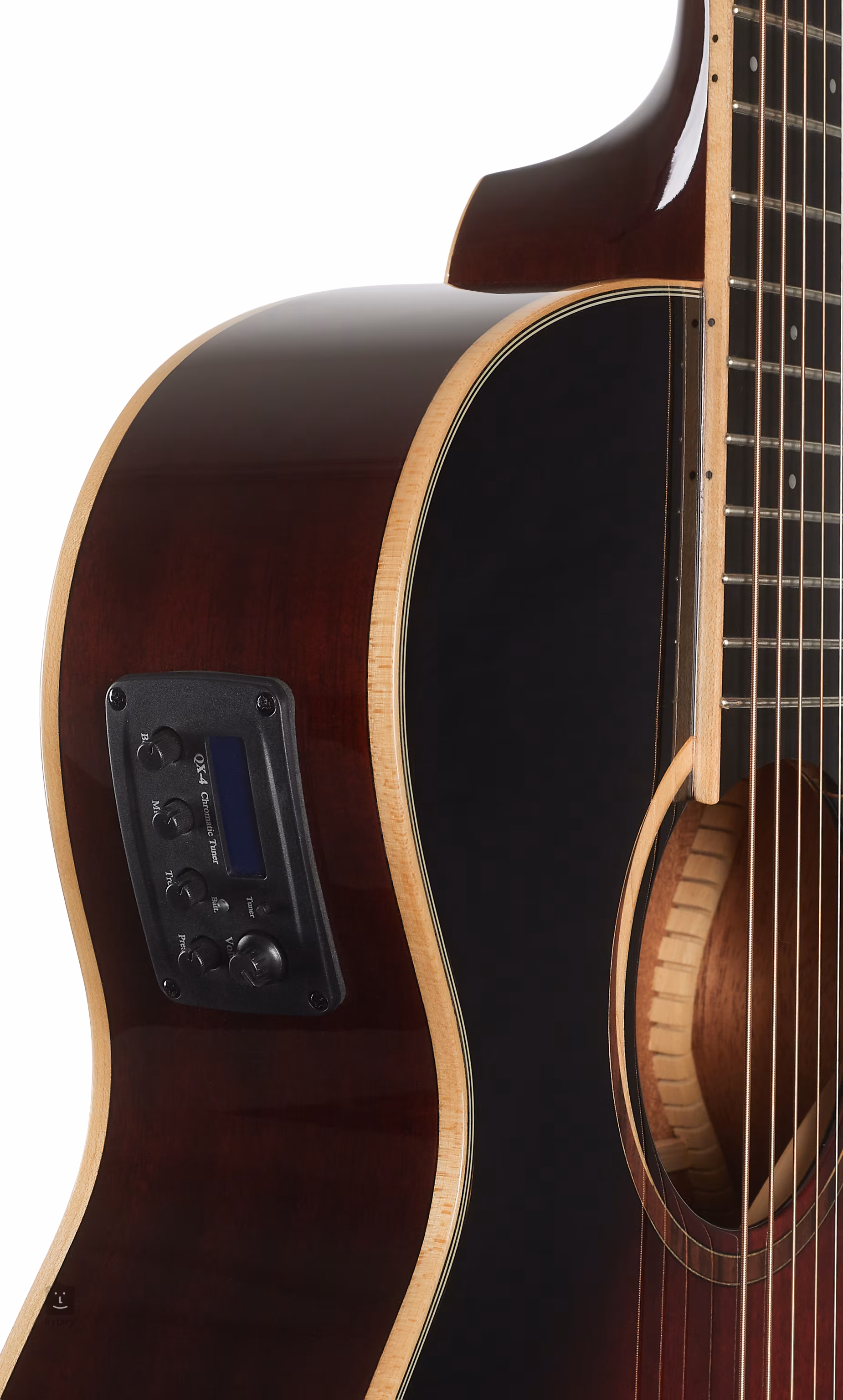 Możliwość nagłośnienia zapewnia firmowy przedwzmacniacz TW Premium Plus z czteropasmowym korektorem, funkcją Phase i wbudowanym stroikiem. Struny są zamocowane przez zerowy i siodełkowy próg z materiału NuBone w chromowanych mechanizmach die-cast i kompozytowym mostku. Ładne wykończenie podkreśla dwustronna klonowa obręcz korpusu, klonowa rozeta, dekoracja tylnej płyty i wykończenie przedniej płyty w jesiennych kolorach Autumn Vintage Burst Gloss.