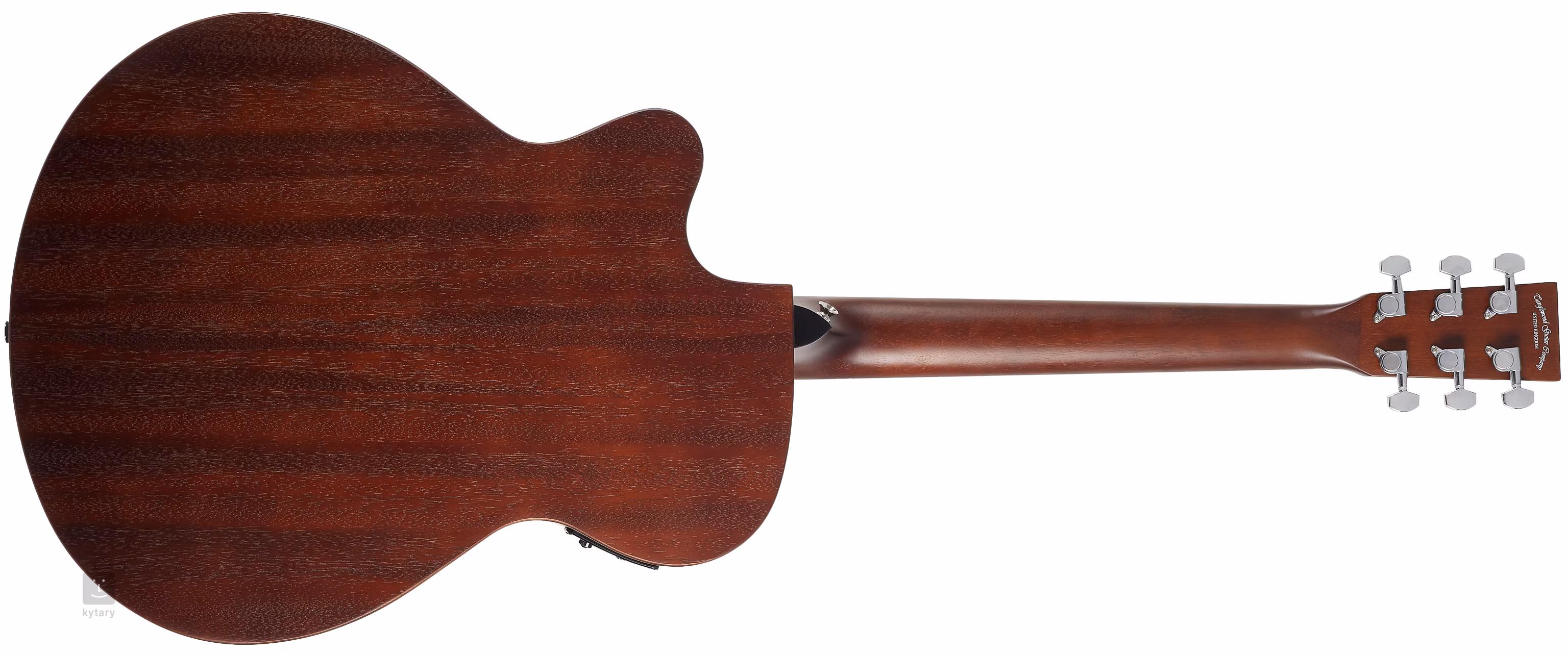 Korpus gitary elektroakustycznej Tanglewood Crossroads TWCRSFCE Orchestra/Folk wykonany jest z laminowanego mahoniu. Kompozytowa hebanowa podstrunnica jest przyklejona do mahoniowej szyjki. Kropki na podstrunnicy ułatwiają orientację. Struny są zamontowane w chromowanych mechanizmach odlewanych ciśnieniowo i kompozytowej główce.