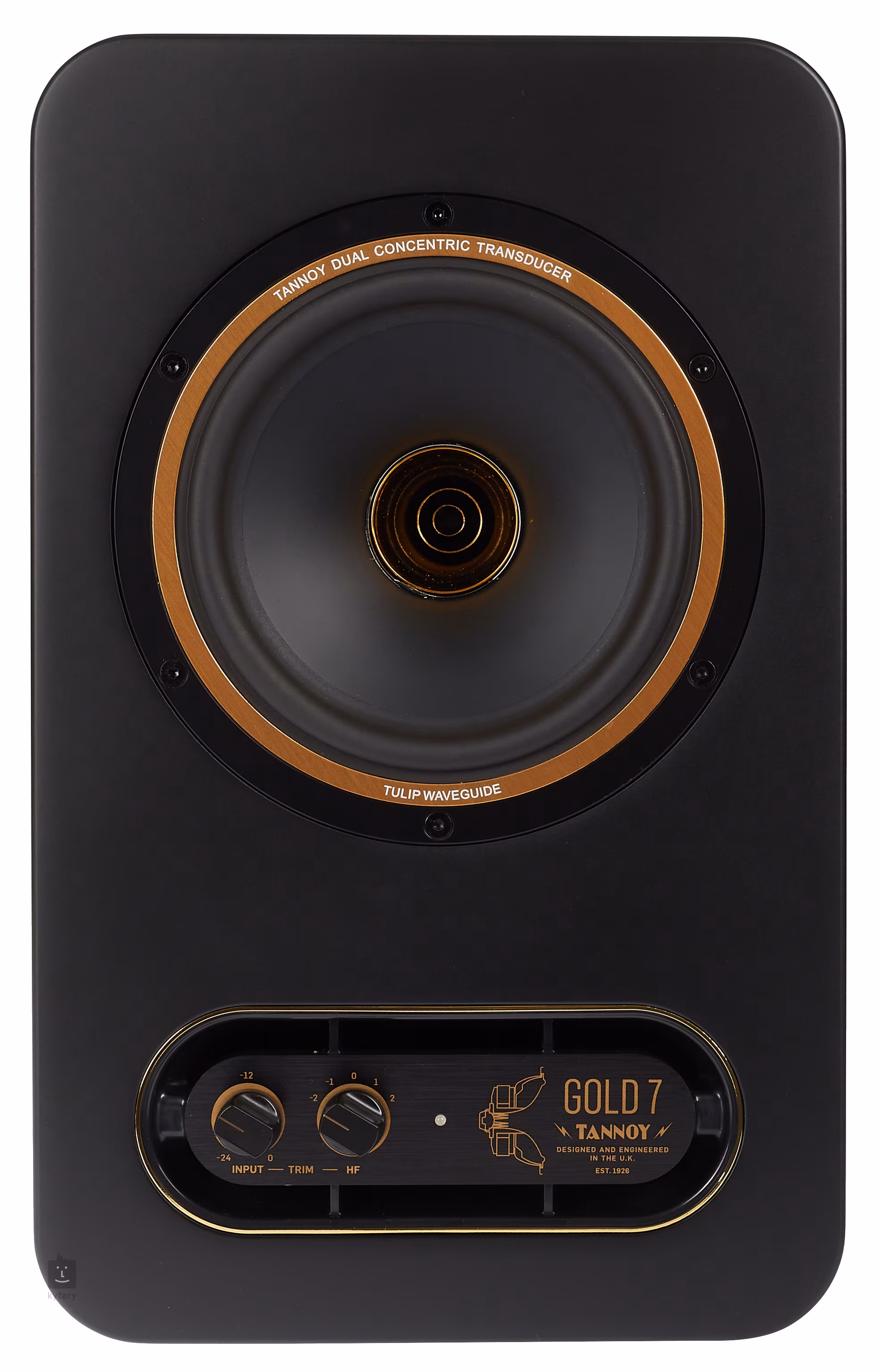 Wewnątrz wytrzymałej konstrukcji Gold 7 znajduje się 6,5-calowy głośnik niskotonowy zapewniający niezrównaną artykulację muzyczną i doskonałą dynamikę, a następnie 1-calowy tytanowy głośnik wysokotonowy z tulipanowym falowodem dla szczegółowego obrazowania stereo. Głośniki, wraz ze wzmacniaczem klasy AB Bi-amp, oferują maksymalną moc wyjściową do 300 W. Z przodu znajdują się pokrętła regulacji głośności i tonów wysokich, natomiast na tylnym panelu umieszczono przycisk włączania/wyłączania, przełącznik automatycznego usypiania, trójpozycyjny przełącznik tłumienia basów o 2 lub 4 dB oraz przełącznik pozycji L/R monitora. Znajdziesz tu również elastyczne możliwości podłączenia w postaci wejść XLR i liniowych, a także wejście AUX lub linię do połączenia monitorów.
