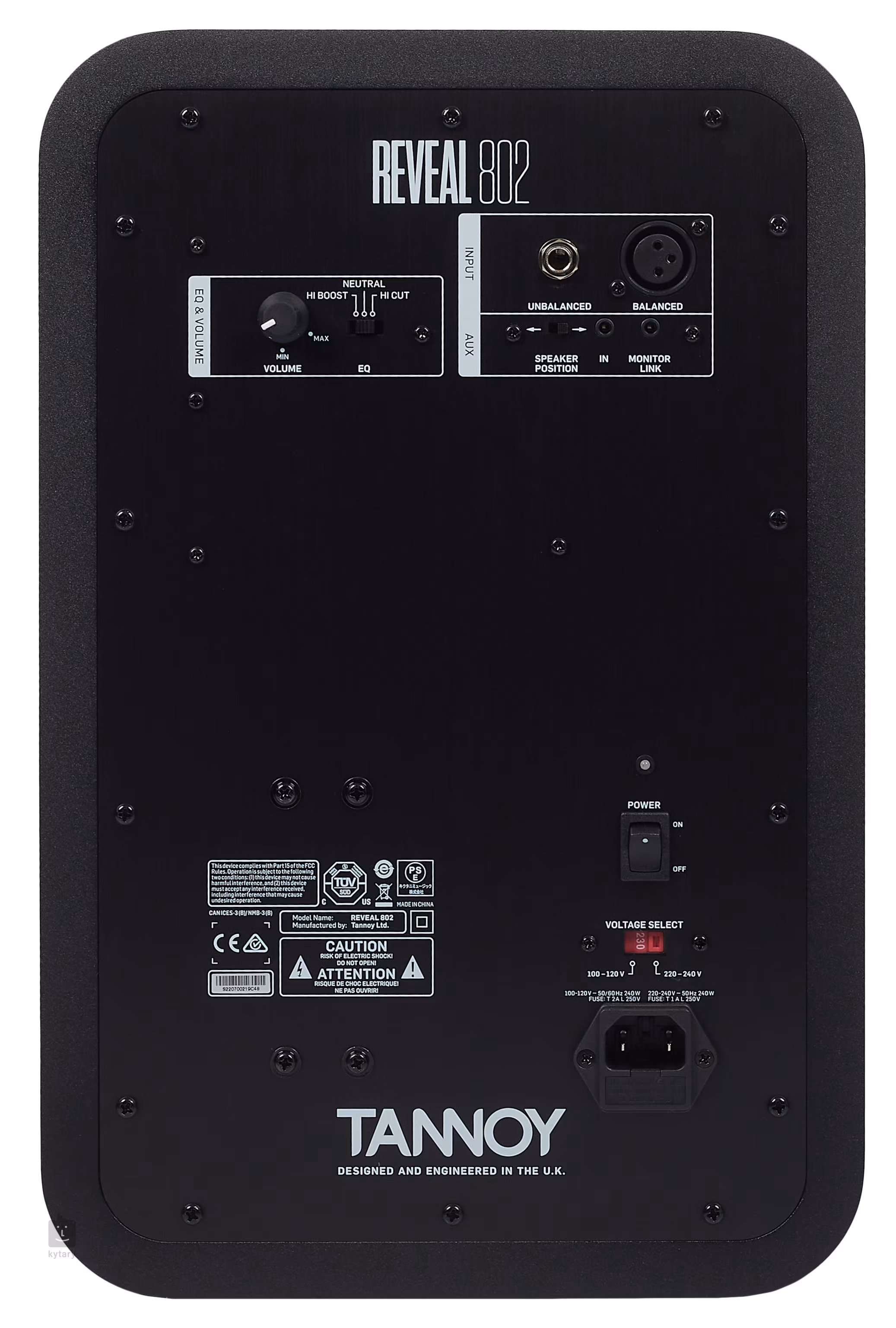 8-calowy głośnik niskotonowy jest uzupełniony przez 1-calowy głośnik wysokotonowy, a ich idealne współdziałanie zapewnia aktywny filtr zwrotnicy dostrojony przez wewnętrznego guru głośników TANNOY, dr Paula Millsa. Dzięki starannemu dostrojeniu, monitory te zapewniają idealny sweet spot, dzięki czemu można poruszać się po przestrzeni roboczej bez utraty obrazu stereo miksu.