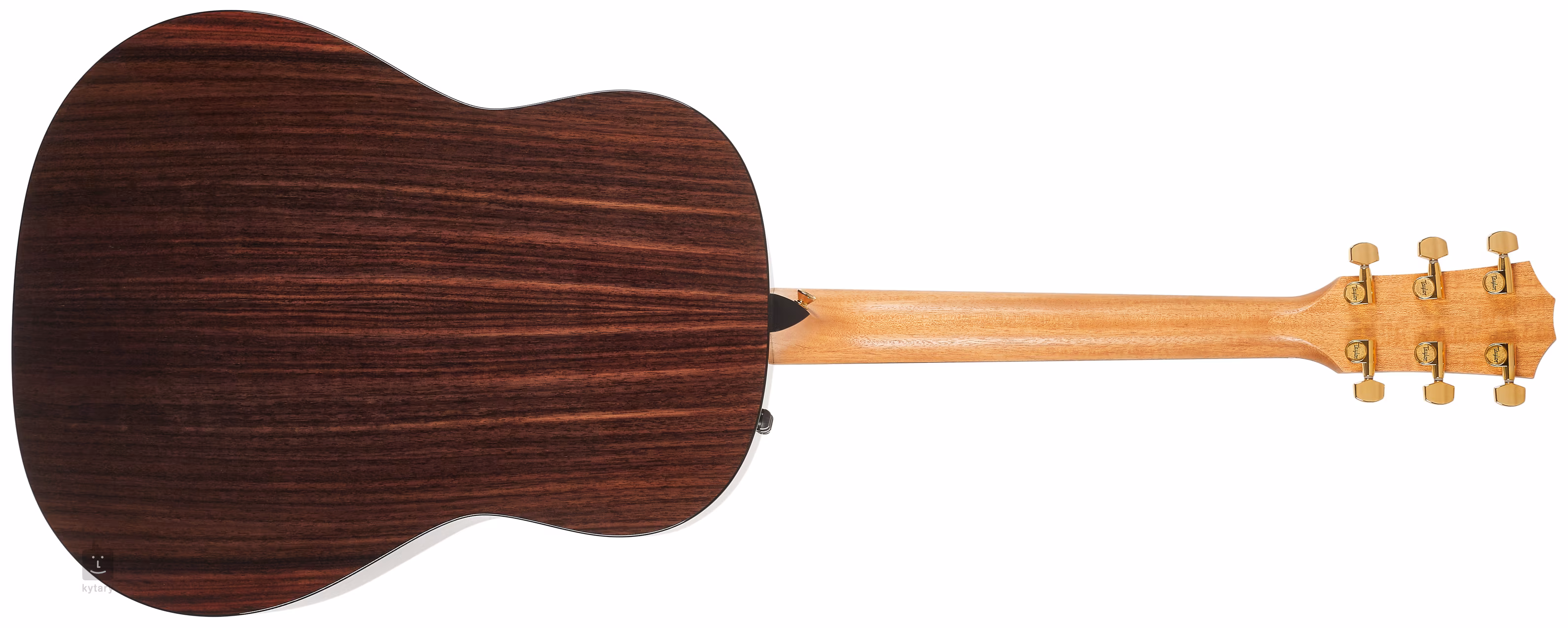 Mahoniowa szyjka przyklejona jest do hebanowej podstrunnicy wyposażonej w dwadzieścia progów. Stabilne strojenie gwarantuje mocowanie strun w firmowej mechanice wykończonej złotem (Taylor Gold). Ładne wykonanie podkreślają tradycyjne elementy w postaci imitacji rozety z masy perłowej, znaczników pozycji w kształcie diamentów, hebanowej okleiny na główce, hebanowych kołków na główkę ze złotymi kropkami i czarnego pickguardu.