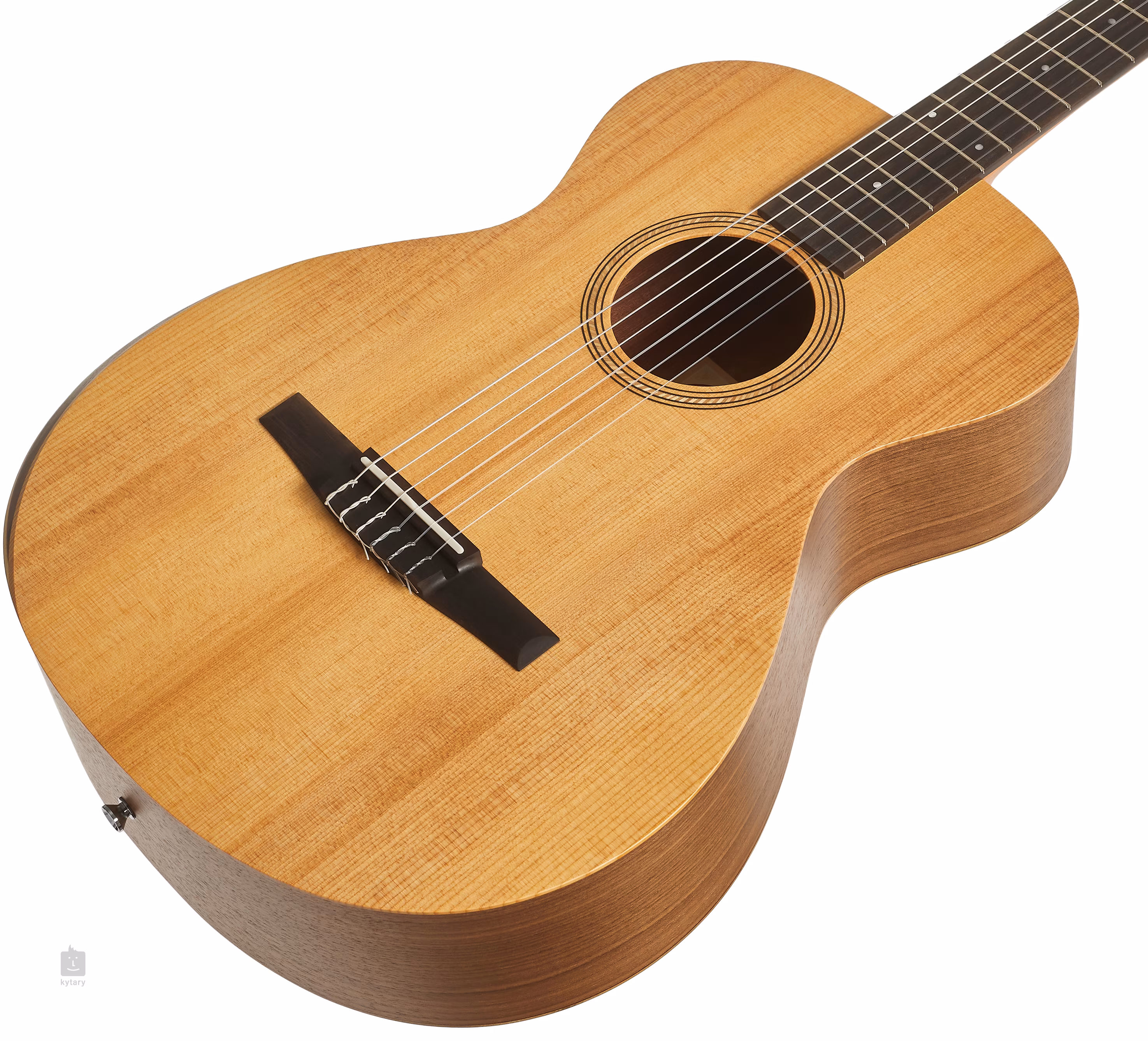 Gitara klasyczna Academy 12-N oferuje wygodny, kompaktowy kształt korpusu typu Grand Concert. Przód instrumentu wykonano z litego świerku Lutz, natomiast boki i tył z laminowanego orzecha włoskiego. Mahoniowa szyjka jest przyklejona do hebanowej podstrunnicy wyposażonej w siedemnaście progów, których pozycje są klasycznie oznaczone kropkami z imitacji masy perłowej. Podstrunnica o szerokości 47,6 mm z zerową liczbą progów oferuje optymalny rozstaw strun do gry palcami i nie wymaga rozstawu palców klasycznej hiszpańskiej gitary. Ergonomiczny podłokietnik również przyczynia się do komfortu gracza.
