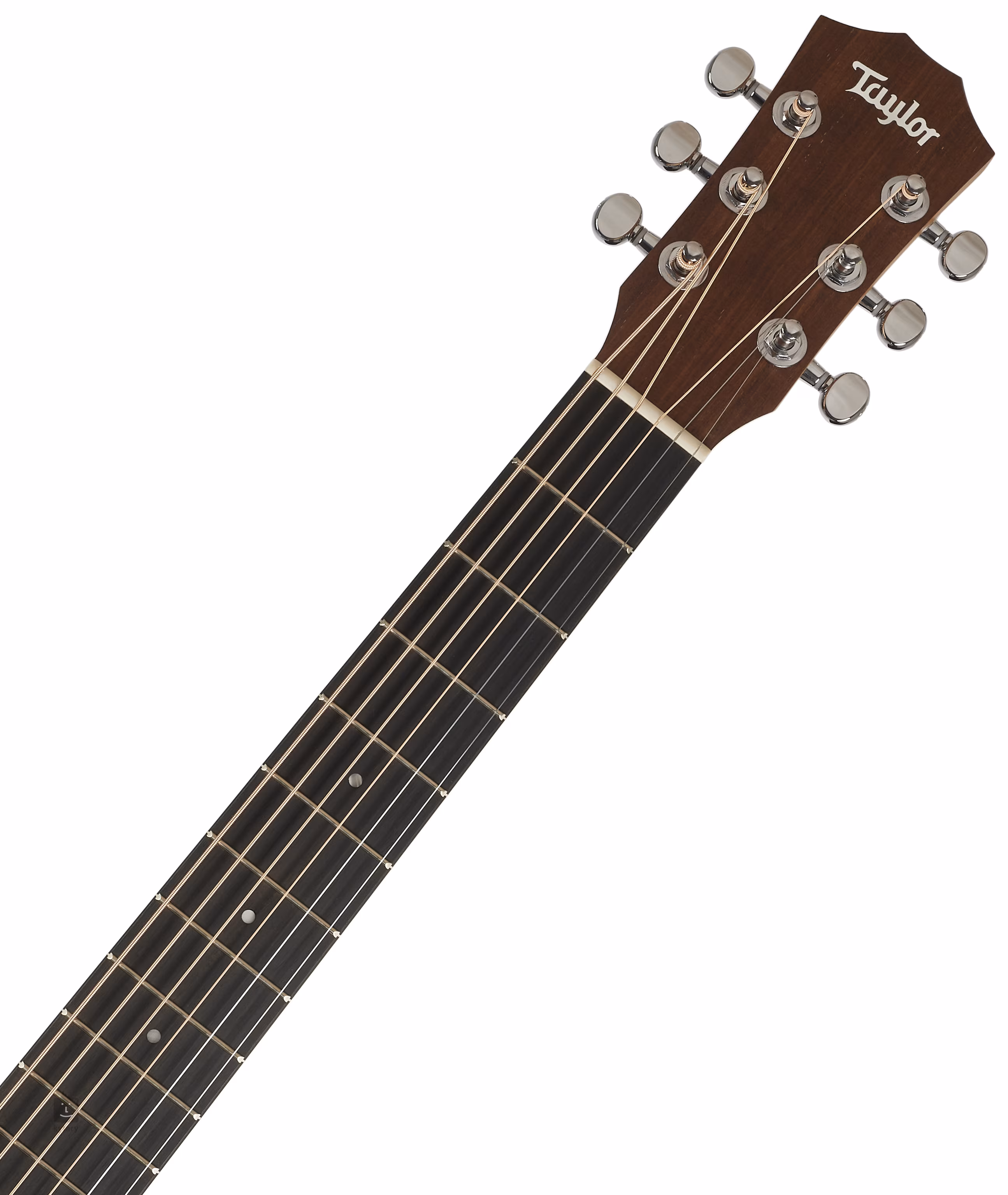 Przód gitary wykonano z litego świerku Sitka, natomiast tył i boki z laminowanego orzecha włoskiego. Do klonowej szyjki przyklejona jest hebanowa podstrunnica wyposażona w dwadzieścia progów i pozycyjne kropki wykonane z imitacji masy perłowej. Stabilne strojenie jest gwarantowane przez zerowe mocowanie strun TusQ w chromowanej mechanice odlewanej ciśnieniowo Taylor i hebanową podstrunnicę. Stylowe wykonanie podkreślają tradycyjne elementy w postaci prostej rozety i okleiny na główce z drewna copafera ozdobionej logo firmy.