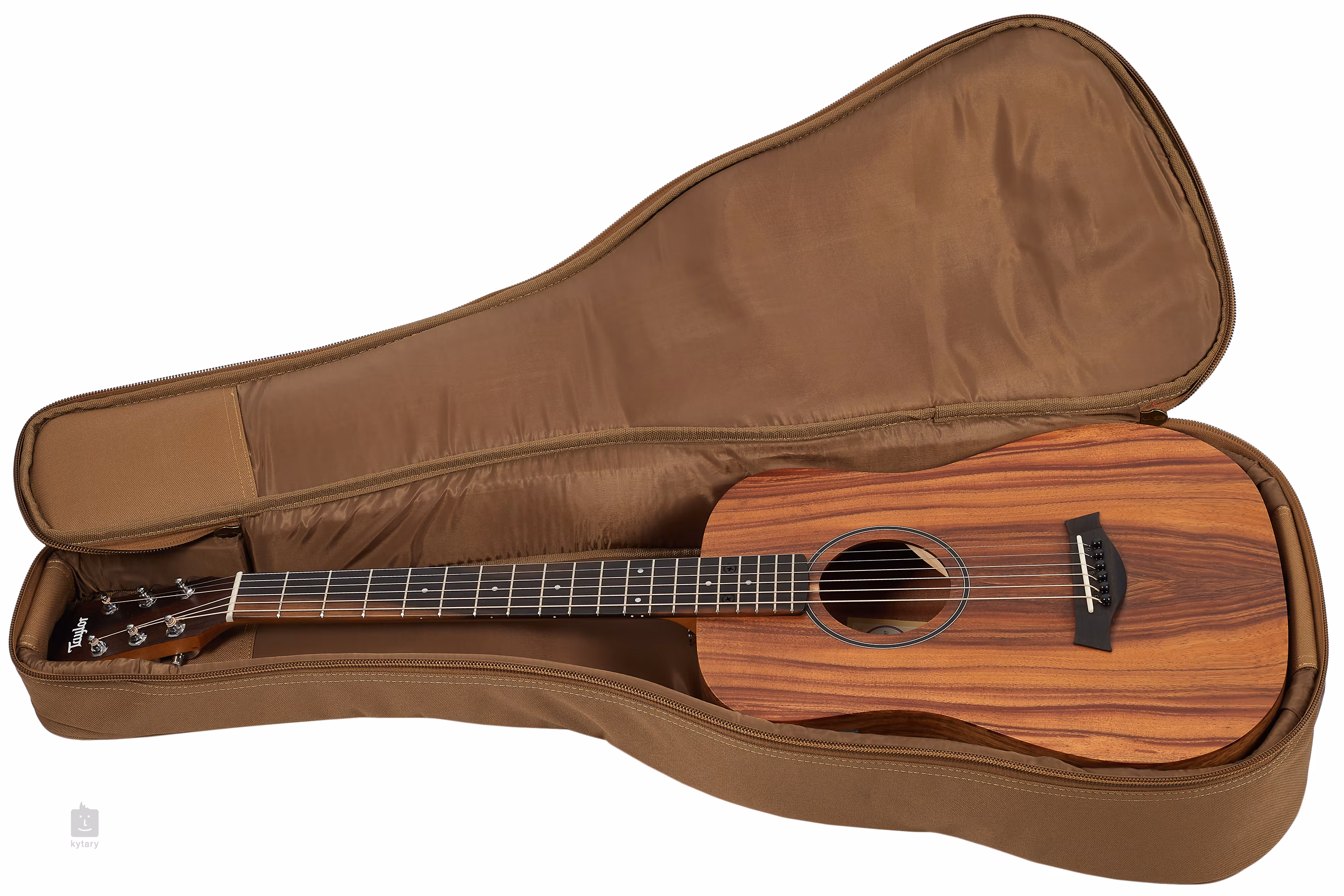 BTe-Koa z serii Baby Taylor to standardowa gitara elektroakustyczna Dreadnought w rozmiarze 3/4 produkowana w Tecate w Meksyku. Te mniejsze gitary mają zaskakująco duże brzmienie i są idealnym wyborem dla podróżujących muzyków lub dzieci.