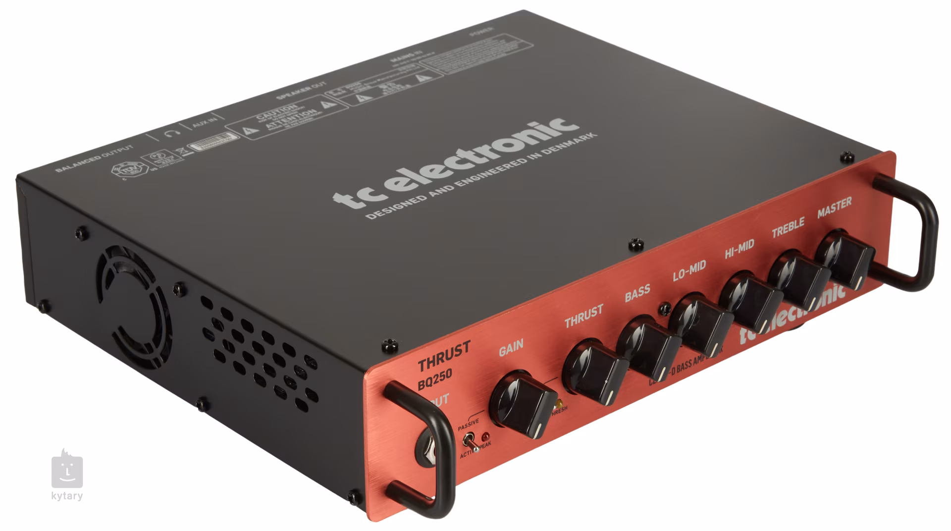 Na przednim panelu znajduje się potencjometr THRUST, który steruje obwodem kompresora. Pozwala to bardzo łatwo dostosować zakres dynamiki dźwięku, aby jak najlepiej pasował do stylu gry i wyróżniał się na scenie lub w sali prób. Ponadto dostępne jest również wyjście DI, które bardzo ułatwia nagrywanie i miksowanie.