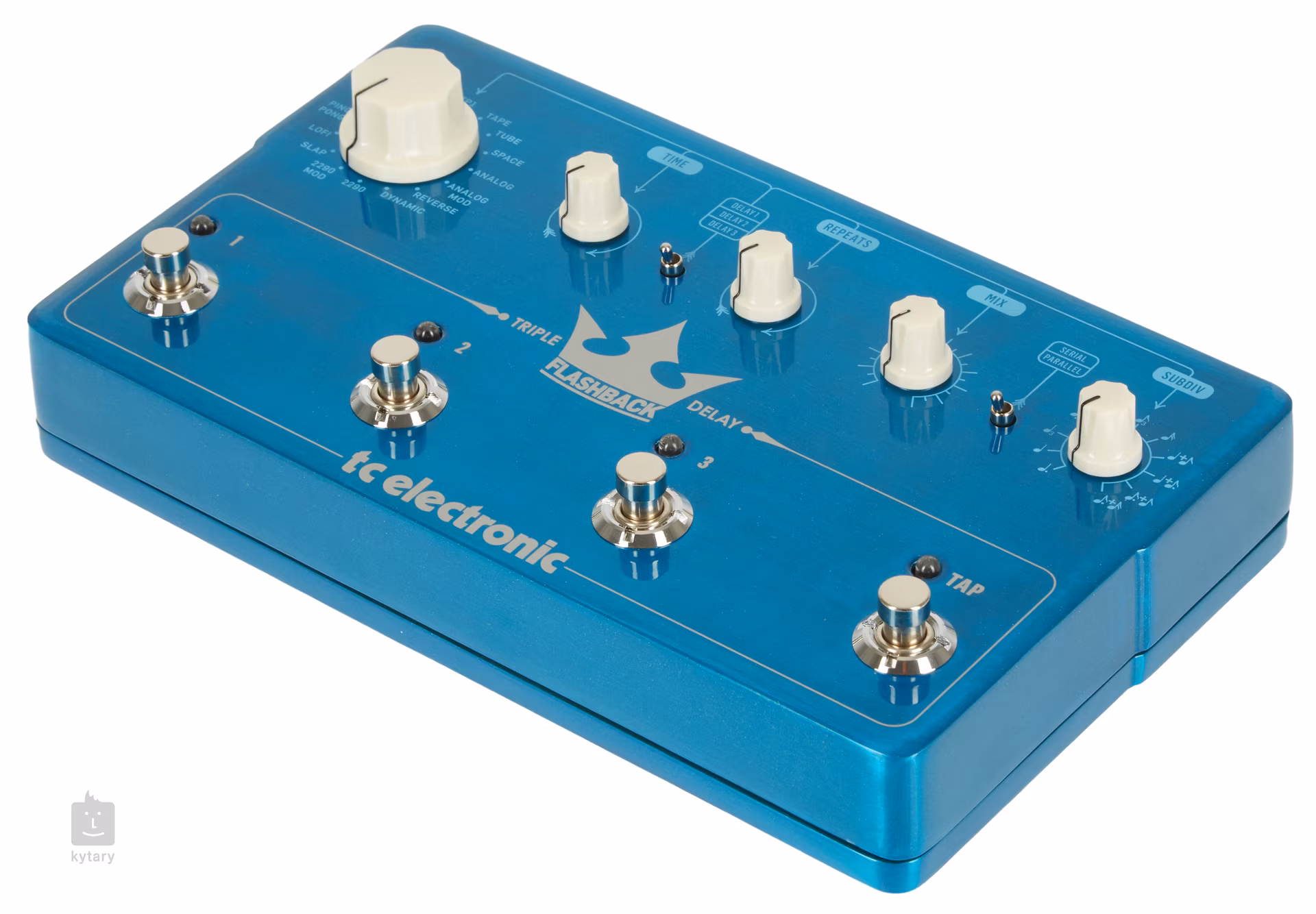 • Sterowanie 4x FS, Effect Select, Subdiv, Time, Repeats, Mix, 3-way Delay switch, Serial/Parallel switch
