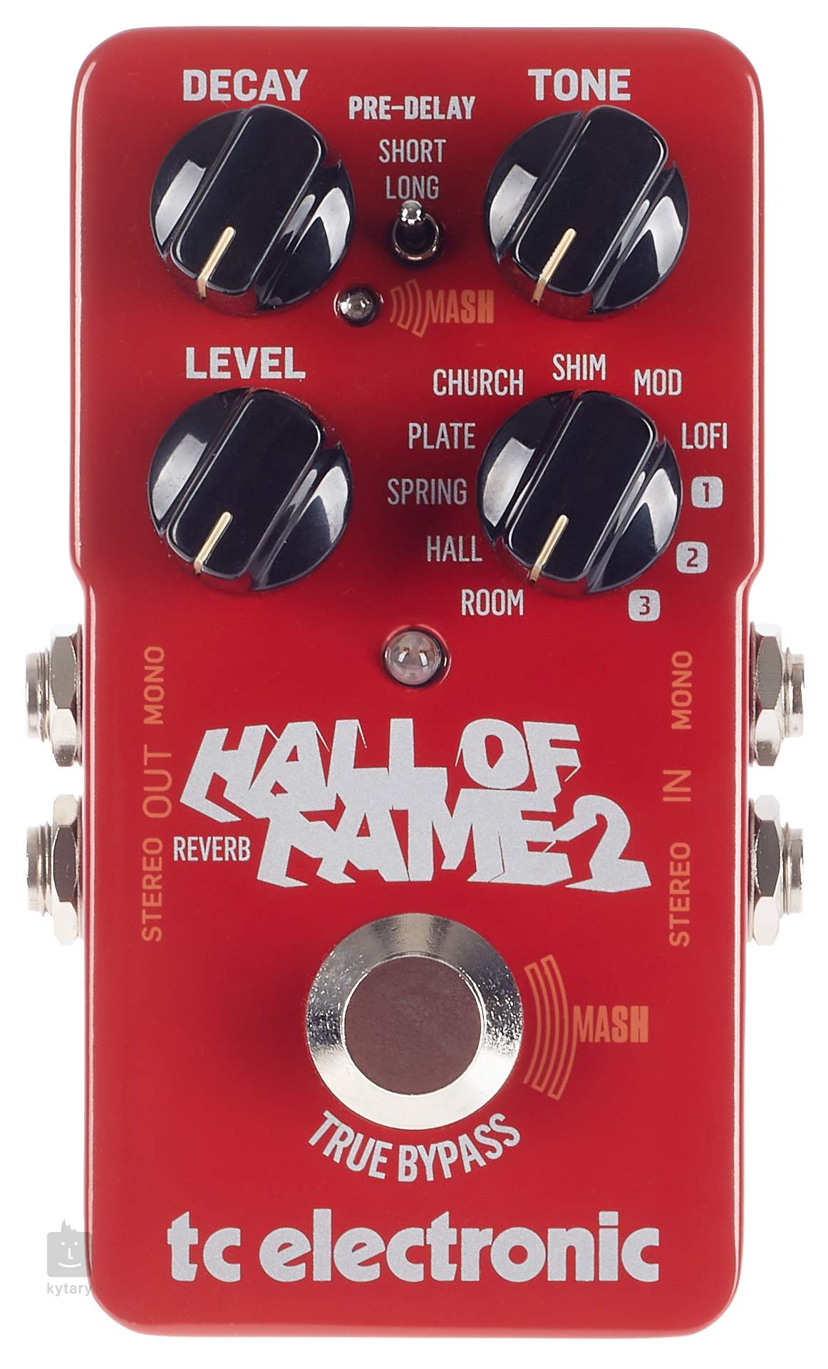 Efekt pedałowy Hall of Fame 2 oferuje wszystko to, co poprzednie modele oraz nowe funkcje. Wykorzystując technologię MASH, która jest aktywowana przez przytrzymanie przełącznika nożnego, łączy w sobie funkcje pogłosu i pedału ekspresji. Technologia ta jest wrażliwa na dotyk, więc im mocniej naciskasz przełącznik, tym wyraźniejszy staje się efekt. Po podniesieniu stopy funkcja MASH automatycznie przechodzi w tryb bypass.