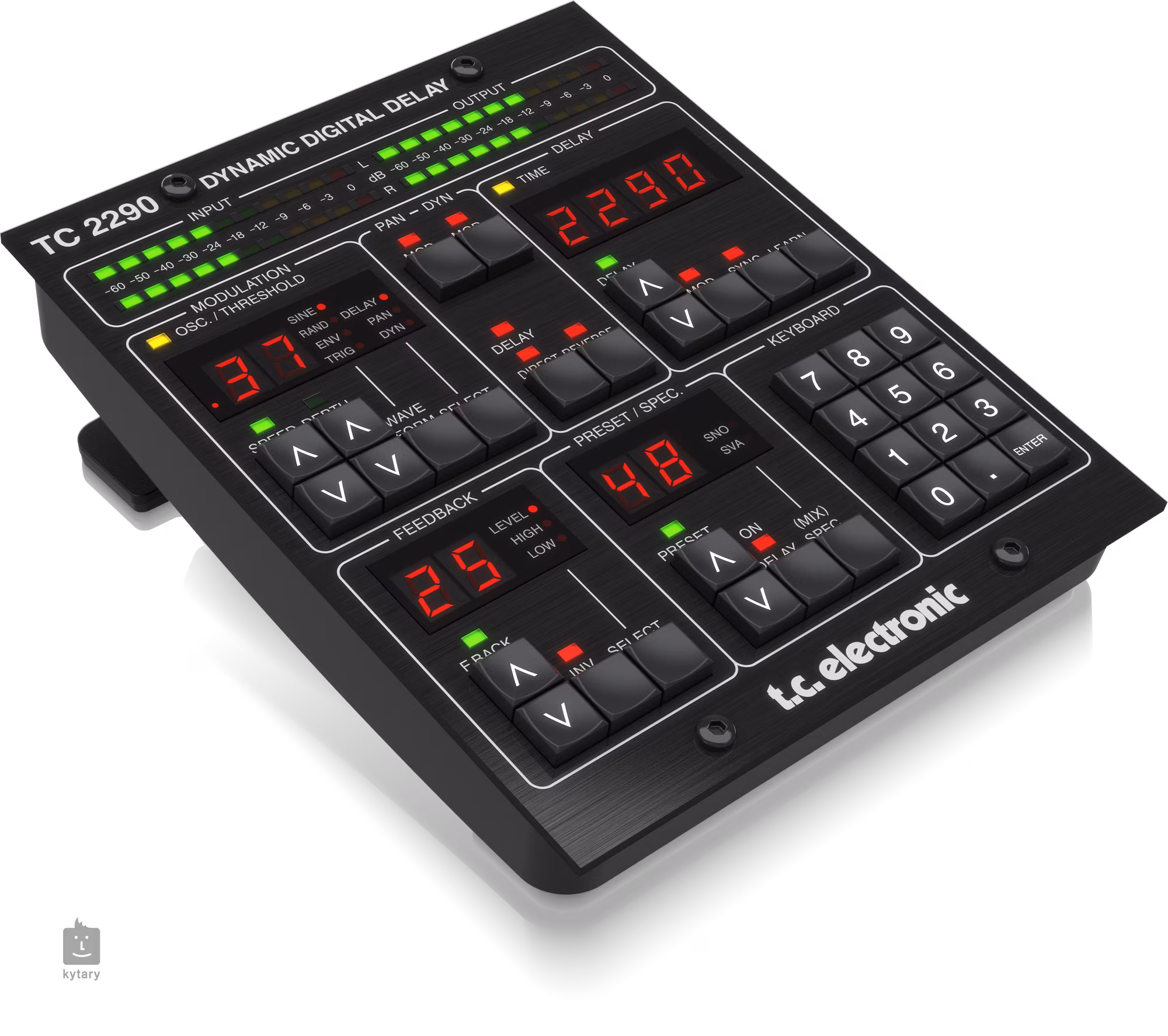 TC2290-DT wyposażony jest w złącze USB i panel sterowania z fizycznymi elementami sterującymi, które zapewniają bezpośredni i intuicyjny dostęp do wszystkich parametrów efektu. Umożliwia to łatwe dostosowanie czasów opóźnienia, powtórzeń, filtrowania i innych ustawień w celu uzyskania dokładnie takiego brzmienia, jakiego oczekujesz.