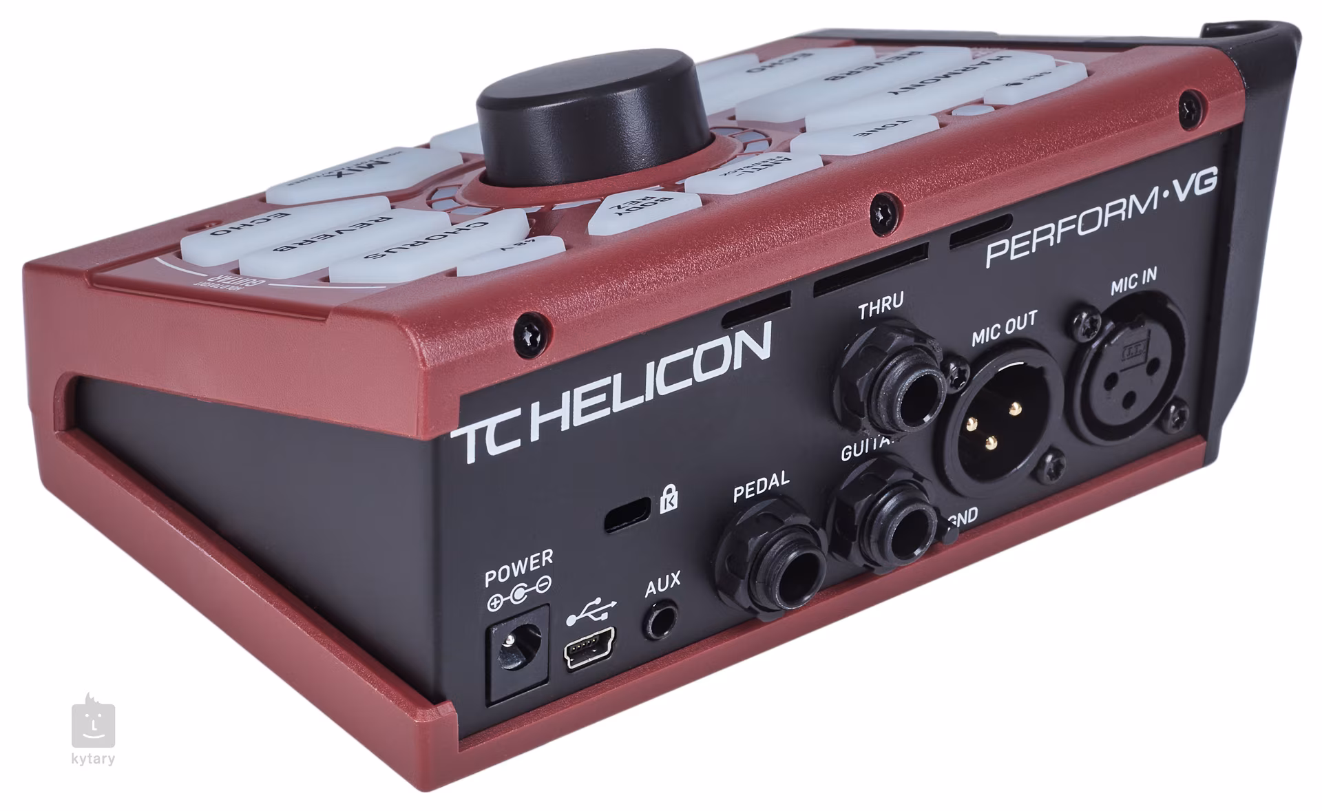 Procesor efektów Perform-VG wzbogaca brzmienie każdego solisty o dwa harmoniczne głosy sterowane akordami gitary oraz efekty takie jak Reverb i Echo. Pełniejszy ton gitary zapewnia algorytm BodyRez, a jej bardziej przekonujące brzmienie gwarantuje chorus. Nikt nie jest idealny, dlatego część wyposażenia stanowi automatyczna korekcja śpiewu, która delikatnie dostosowuje intonację do najbliższego tonu. Nie zabrakło również ochrony przed sprzężeniem zwrotnym. Za doskonałą obróbkę głosu odpowiada adaptacyjna kontrola tonu. Zawiera ona adaptacyjny korektor, kompresor, de-esser i bramkę. Perform-VG działa również jako przedwzmacniacz mikrofonowy o niskim poziomie szumów z zasilaniem fantomowym (48 V). Aby ułatwić obsługę, procesor jest wyposażony w wyjścia dla pedałów Switch-3 lub Switch-6 (nie wchodzą w skład zestawu). W warunkach domowych przyda się wyjście słuchawkowe.