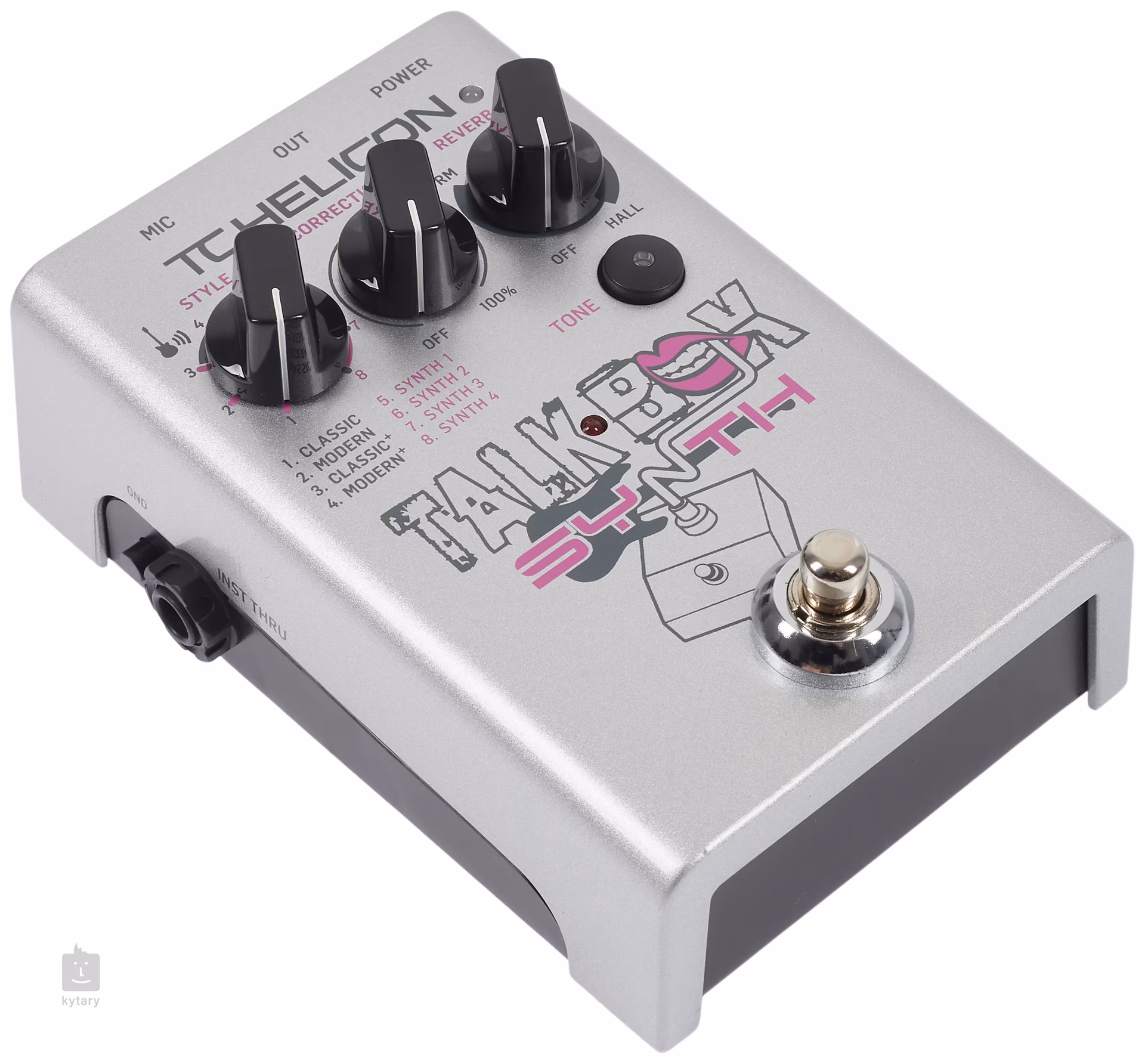 Talkbox Synth łączy efekty gitarowe i wokalne, które pomogą Ci dalej rozwijać swoją ekspresję muzyczną. Dostępne są dwie wersje Talkboxa (Classic, Modern), które można łączyć z gitarą i regulować wysokość dźwięku. Urządzenie oferuje cztery rodzaje syntezatorów, trzy pogłosy, adaptacyjny korektor, kompresor, de-esser i gate. Nikt nie jest idealny, dlatego część wyposażenia stanowi automatyczna korekcja śpiewu, która delikatnie dostosowuje intonację do najbliższego tonu. Talkbox Synth działa również jako przedwzmacniacz mikrofonowy o niskim poziomie szumów z zasilaniem fantomowym, który automatycznie reguluje moc wyjściową. Wyjście USB służy do połączenia z aplikacją VoiceSupport, która oferuje aktualizacje, nowości i presety FX.