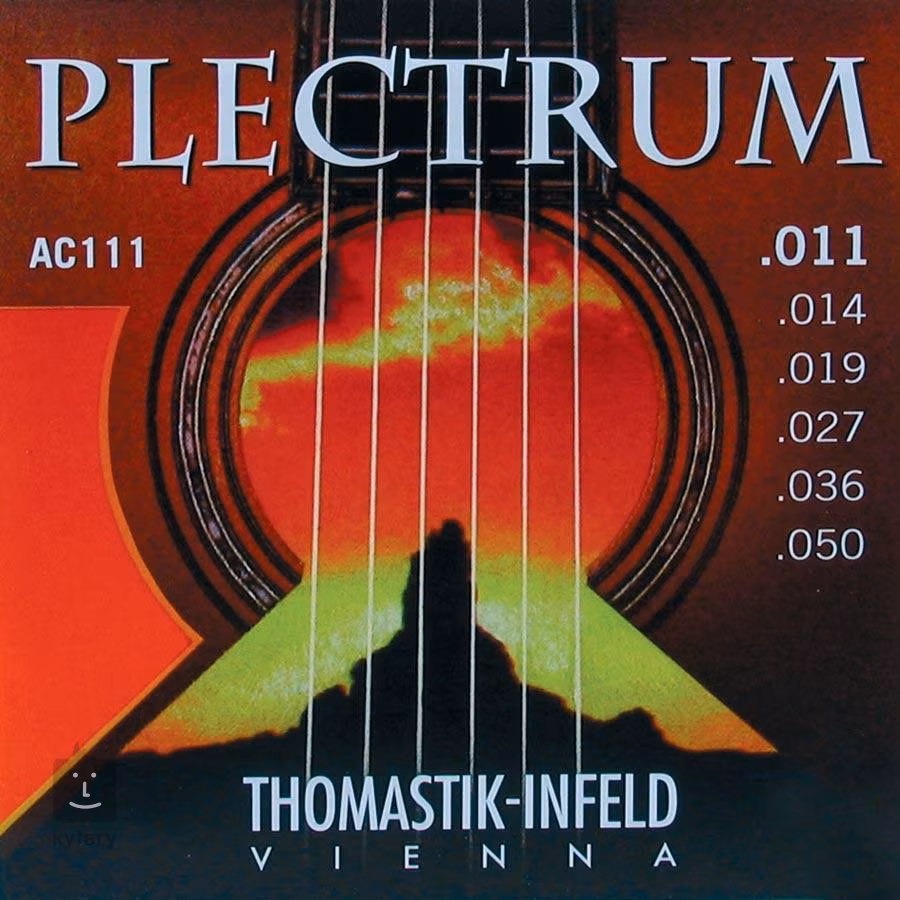 Struny z serii Plectrum firmy Thomastik łączą wygładzone uzwojenie strun A, D, G z cylindrycznym uzwojeniem struny basowej E. Ponadto zastosowano w nich cienkie warstwy jedwabiu pomiędzy rdzeniem a uzwojeniem dla precyzyjnego strojenia i miękkiego, ciepłego brzmienia. Rezultatem jest piękny, zaokrąglony dźwięk, łatwość gry i eliminacja hałasu podczas zmiany akordów i krzyżowania strun. Dodatkowo, dzięki niższemu ogólnemu naprężeniu, struny Plectrum mogą przedłużyć żywotność starszych gitar z osłabionym ożebrowaniem.
