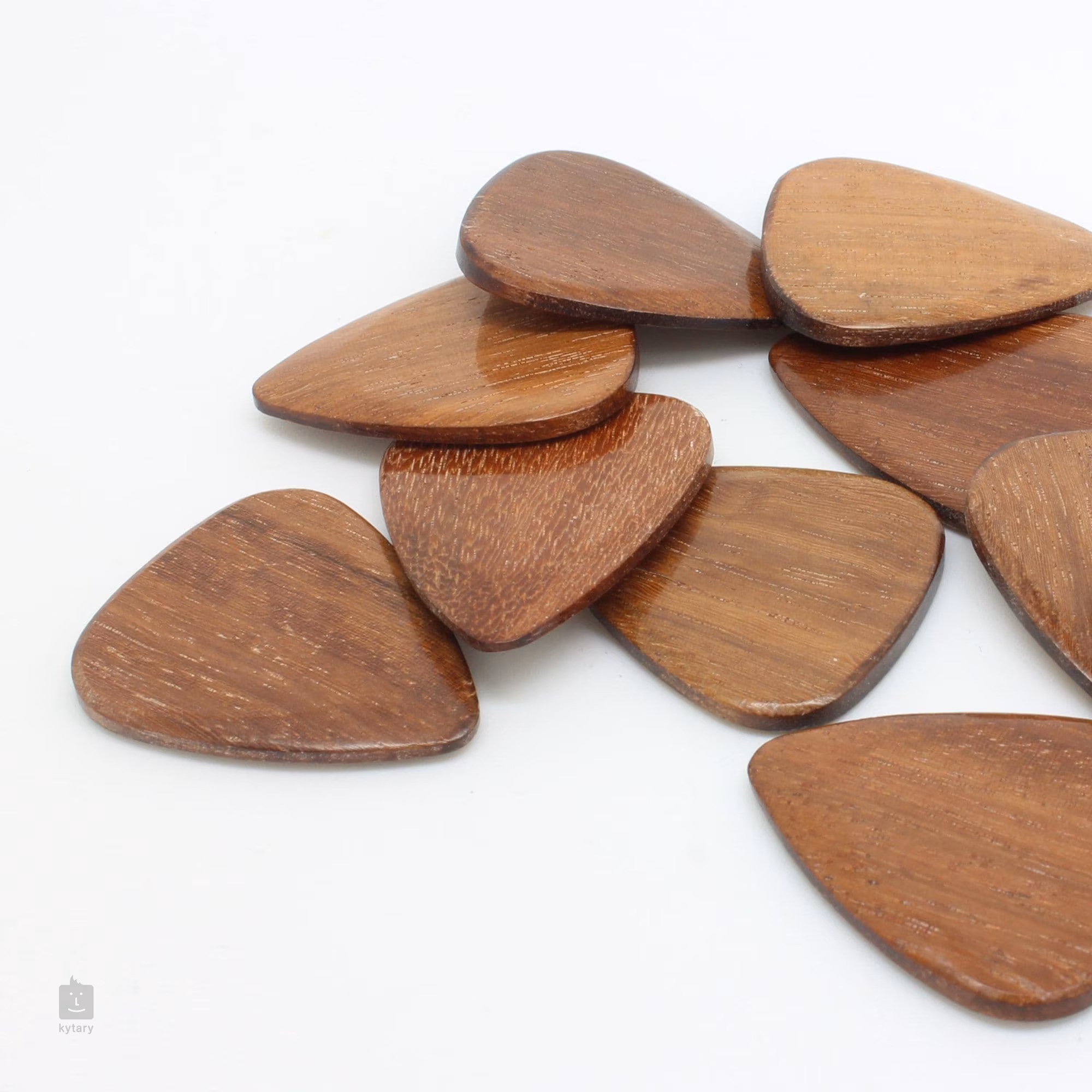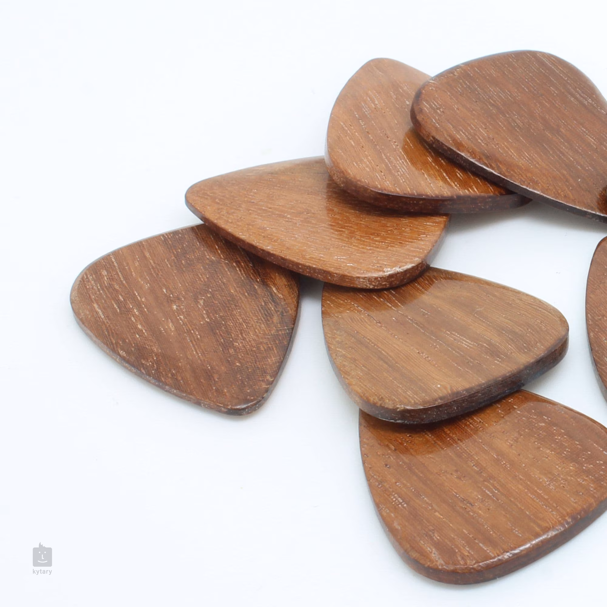 Niezależnie od tego, czy szukasz prezentu dla entuzjastycznego gitarzysty, czy po prostu szukasz idealnego brzmienia i chcesz wypróbować picki wykonane z niekonwencjonalnych materiałów, w Timber Tones znajdziesz to, czego potrzebujesz. Ten zestaw zawiera cztery kostki wykonane z Cobra's Saffron, średnio twardego drewna, które zapewnia zrównoważone, neutralne częstotliwościowo brzmienie. Picki mają grubość 2,4 mm, która zwęża się do 0,7 mm w kierunku końcówki. Są one ręcznie wycinane i lakierowane.