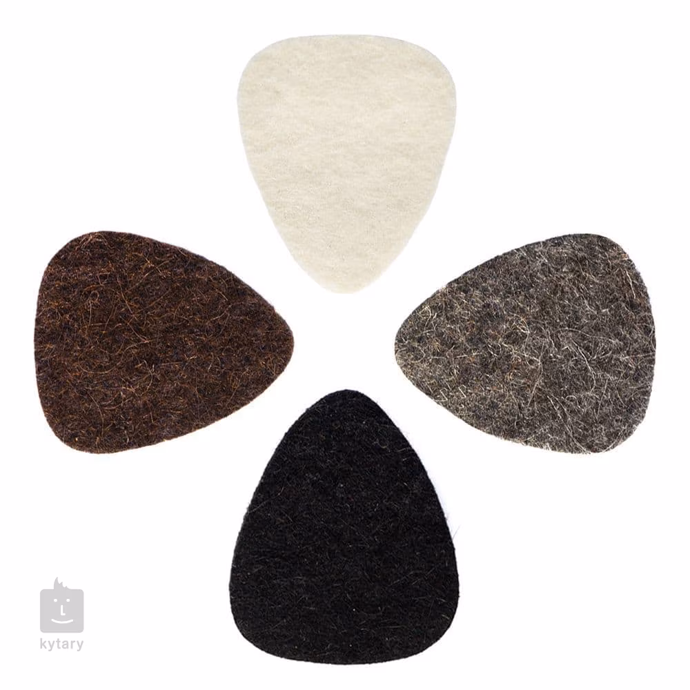 Zestaw czterech filcowych kostek z wełny, idealnych do gry na ukulele. Naturalna wełna jest miękka i giętka, dzięki czemu jest delikatna dla nylonowych strun i nadaje dźwiękowi okrągły i ciepły ton. W opakowaniu znajdziemy kostki o różnej twardości - biała ma grubość 4 mm, szara 5 mm, a brązowa i czarna 5 mm i są dodatkowo wzmocnione, co zwiększa ich twardość i nadaje im czystsze brzmienie.