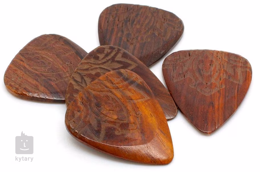Niezależnie od tego, czy szukasz prezentu dla entuzjasty muzyki, czy po prostu szukasz idealnego brzmienia i chcesz wypróbować picki wykonane z niekonwencjonalnych materiałów, na pewno znajdziesz to, czego potrzebujesz w Timber Tones. Drewniane picki z serii Mandala T ones wykonane są z egzotycznego drewna, które wytwarza różnokolorowe dźwięki. Ten model jest wykonany ze stosunkowo twardego drewna Burma Padauk, które wydobywa z gitary wyraźne i jasne dźwięki. Podstrunnica ma grubość 2,5 mm, która zwęża się do 0,7 mm w kierunku końcówki. Laserowo wycięty motyw nie tylko nadaje jej stylowy wygląd, ale także solidny antypoślizgowy uchwyt.