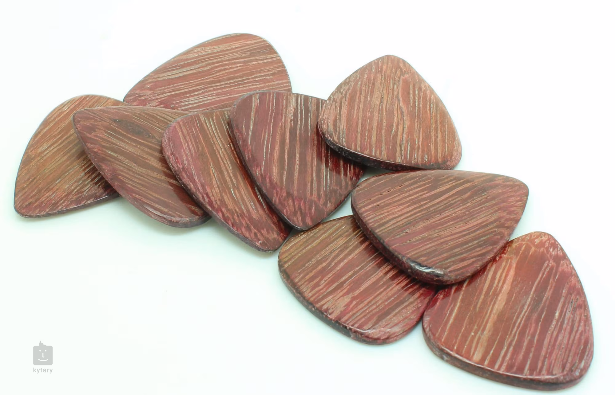 Niezależnie od tego, czy szukasz prezentu dla zapalonego gitarzysty, czy po prostu szukasz idealnego brzmienia i chcesz wypróbować picki wykonane z niekonwencjonalnych materiałów, w Timber Tones znajdziesz to, czego potrzebujesz. Ten model jest wykonany ze średnio twardego drewna Purple Heart, które balansuje na granicy ciepła i klarowności - nadaje bardziej okrągłe brzmienie gitarze elektrycznej, jednocześnie rozjaśniając akustyczną. Ma grubość 2,4 mm, która zwęża się do 0,7 mm w kierunku końcówki. Podstrunnica jest ręcznie wycinana i lakierowana.