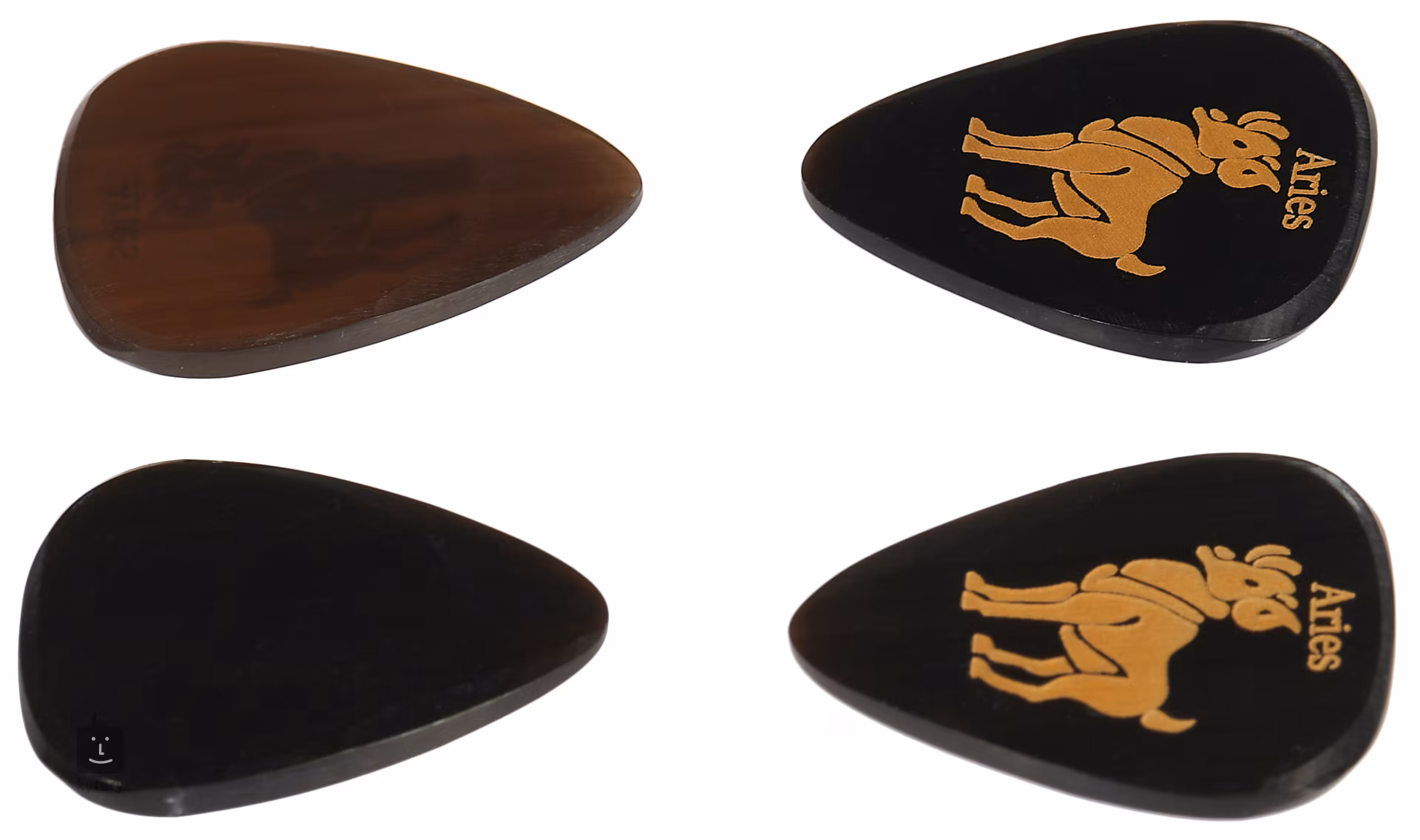 Niezależnie od tego, czy szukasz prezentu dla entuzjastycznego gitarzysty z pasją do astrologii, czy po prostu szukasz idealnego brzmienia i chcesz wypróbować picki wykonane z nietypowych materiałów, na pewno znajdziesz to, czego potrzebujesz w Timber Tones. Ten zestaw unikalnych kostek z motywem znaku zodiaku zawiera kostki wykonane z rogu bawoła wodnego. Mają one grubość 2,5 mm, zwężając się do 0,7 mm w kierunku końcówki i wytwarzają ciepłe, okrągłe brzmienie podczas gry. Nadają się zarówno do gitary elektrycznej, jak i akustycznej.