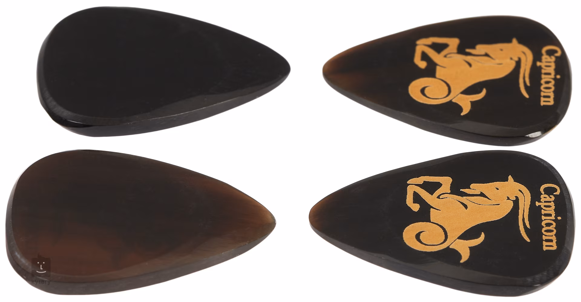 Niezależnie od tego, czy szukasz prezentu dla entuzjastycznego gitarzysty z pasją do astrologii, czy po prostu szukasz idealnego brzmienia i chcesz wypróbować picki wykonane z nietypowych materiałów, na pewno znajdziesz to, czego potrzebujesz w Timber Tones. Ten zestaw unikalnych kostek z motywem znaku zodiaku zawiera kostki wykonane z rogu bawoła wodnego. Mają one grubość 2,5 mm, zwężając się do 0,7 mm w kierunku końcówki i wytwarzają ciepłe, okrągłe brzmienie podczas gry. Nadają się zarówno do gitary elektrycznej, jak i akustycznej.