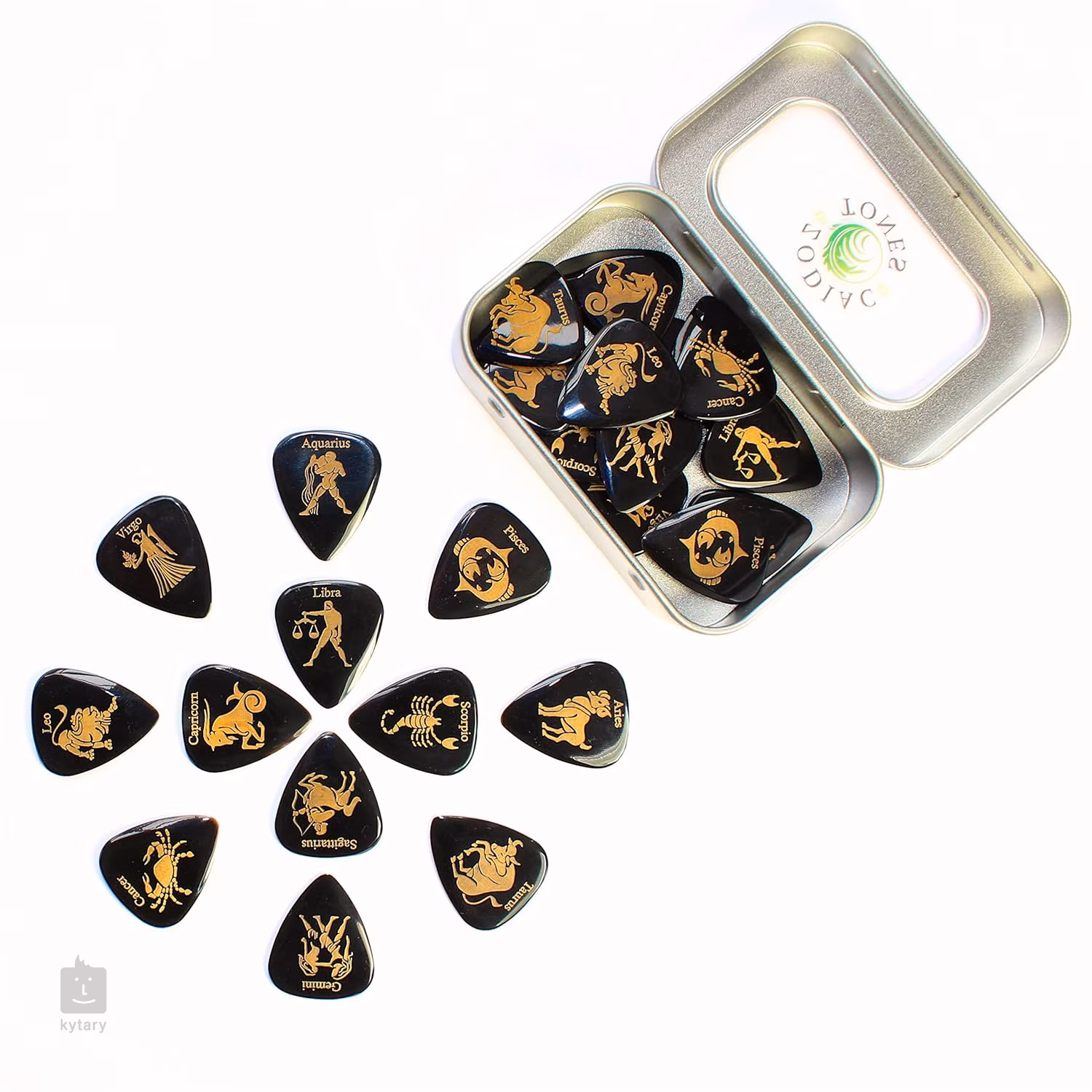 Niezależnie od tego, czy szukasz prezentu dla entuzjastycznego gitarzysty z pasją do astrologii, czy po prostu szukasz idealnego brzmienia i chcesz wypróbować picki wykonane z nietypowych materiałów, na pewno znajdziesz to, czego potrzebujesz w Timber Tones. Ten zestaw unikalnych kostek z motywem znaku zodiaku zawiera kostki wykonane z rogu bawoła wodnego. Mają one grubość 2,5 mm, zwężając się do 0,7 mm w kierunku końcówki i wytwarzają ciepłe, okrągłe brzmienie podczas gry. Nadają się zarówno do gitary elektrycznej, jak i akustycznej.