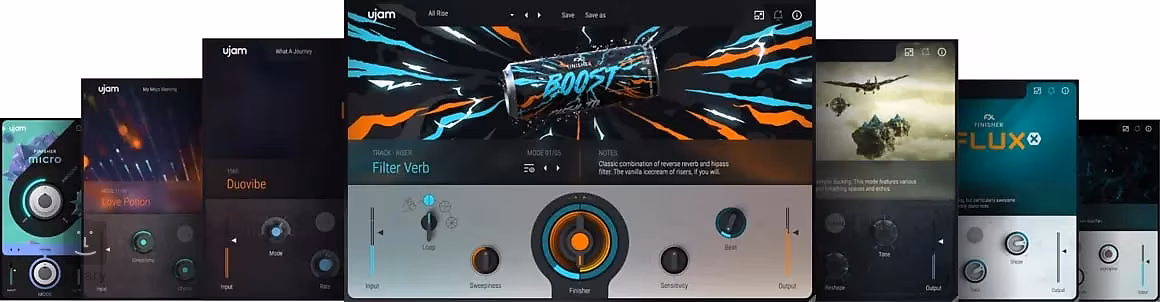 Odkryj nieskończoną kreatywność i różnorodność dźwiękową dzięki Finisher Bundle od UJAM. Ten zestaw oferuje unikalne wtyczki efektowe, które pozwalają na natychmiastową inspirację i profesjonalne projektowanie dźwięku bez zbędnej skomplikowanej konfiguracji.
