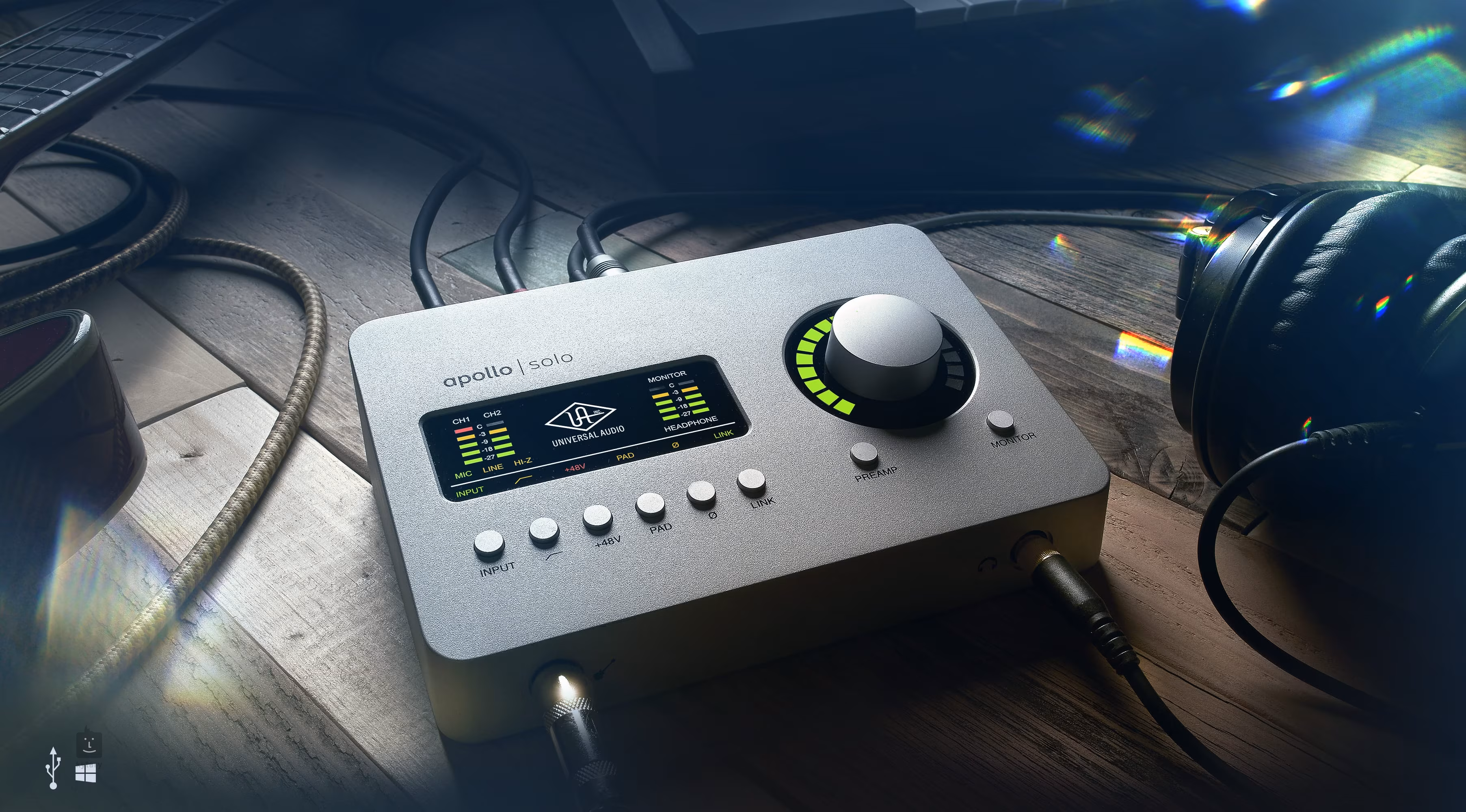 Apollo SOLO USB jest interfejsem audio przeznaczonym do nagrywania dźwięku dla komputerów stacjonarnych i mobilnych z systemem Windows. Dodatkowo, pakiety wtyczek, w tym Heritage Edition i Realtime Analog Classics, są dołączone całkowicie za darmo.