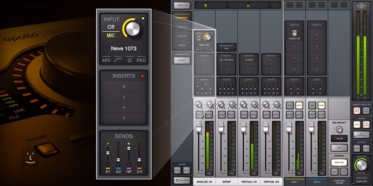 Nagrywaj i miksuj w doskonałej jakości 24bit/192kHz Apollo Twin posiada największy zakres dynamiki i najniższy poziom szumów spośród wszystkich desktopowych interfejsów audio dostępnych na rynku. Zastosowano w nim wysokiej klasy przetworniki i przedwzmacniacze, identyczne jak w droższych modelach studyjnych Apollo DUO i QUAD. Cyfrowo sterowane wyjście dla monitorów odsłuchowych zapewnia pełną rozdzielczość i płynne zmiany głośności, gwarantując idealny balans głośności między dwoma kanałami na wszystkich poziomach głośności.