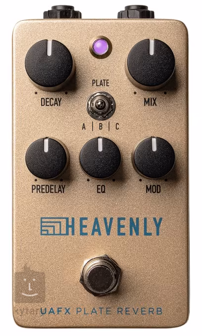 Universal Audio Heavenly Plate to kompaktowy efekt pedałowy inspirowany cenionym Golden Reverberator, dzięki któremu możesz zanurzyć się w bogatych dźwiękach otoczenia klasycznych studyjnych pogłosów płytowych z lat 50-tych. Trzy różne tryby (Vintage Bright, VIntage Dark, Modern Full) zapewniają pełną gamę dźwięków pogłosu płytowego, które można łatwo dostosować do własnych potrzeb za pomocą regulatorów Decay, Mix, EQ i PreDelay. Modulacja sygnału pogłosu jest wyimaginowanym akcentem dźwiękowej przyprawy, w którym można regulować nie tylko jego intensywność, ale także szybkość w trybach Slow i Fast.