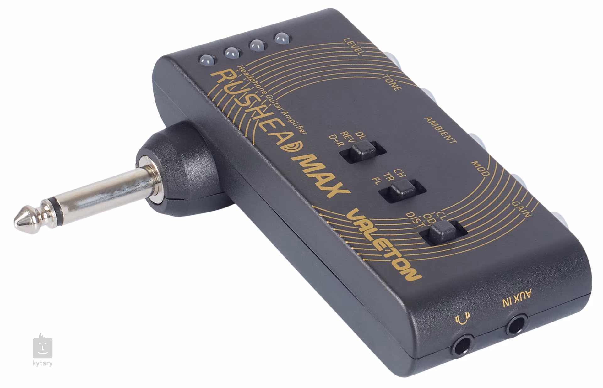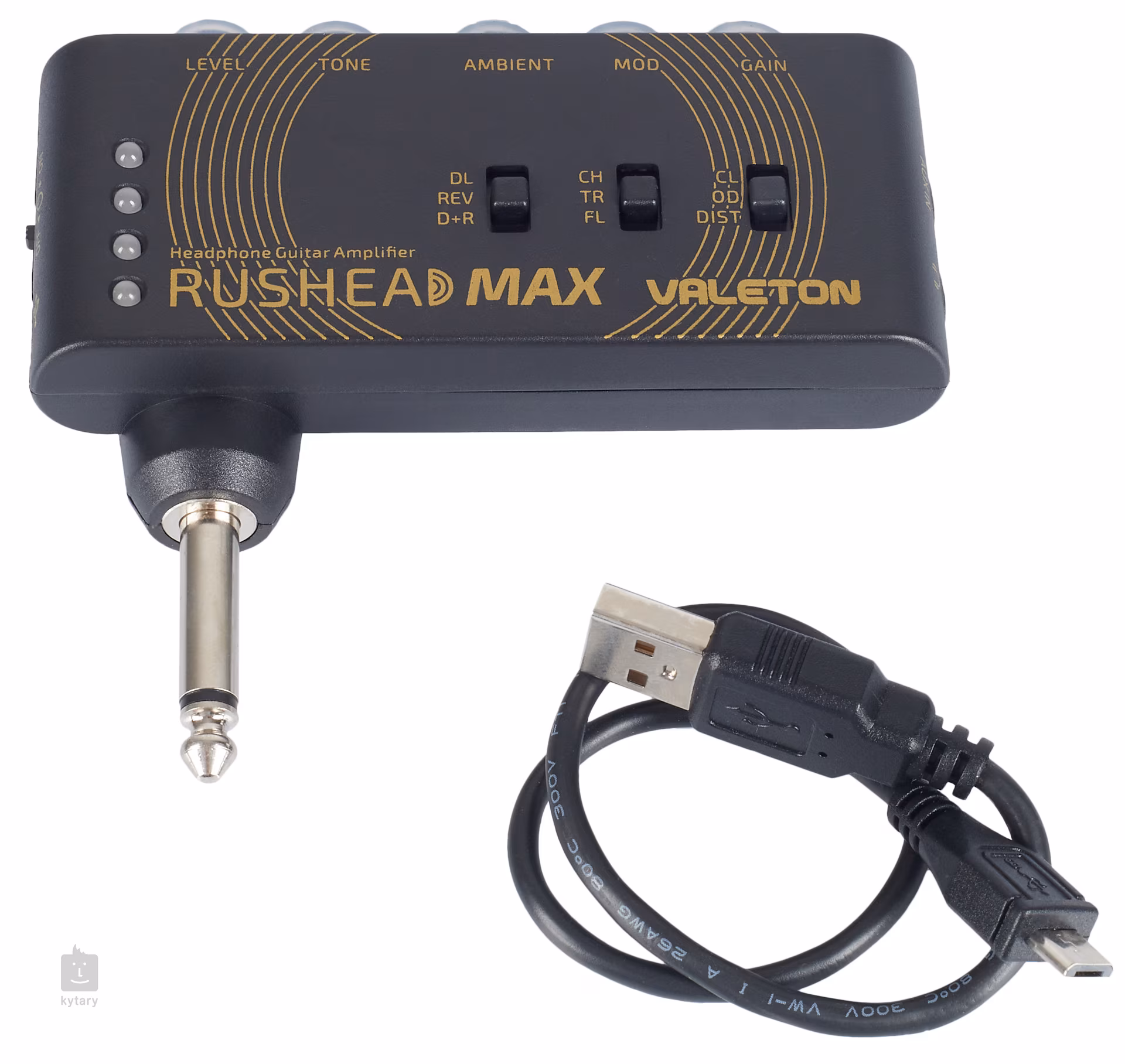 Rushead Max to poręczny gitarowy wzmacniacz słuchawkowy, który oferuje trzy różne tryby dźwięku - Clean, Crunch i hi-gain Distortion mod, wraz z efektami delay/reverb i modulacyjnymi (chorus, tremolo, flanger). Akumulator litowo-jonowy 5 V ma żywotność do 5 godzin na jednym ładowaniu, do ładowania można użyć dołączonego kabla USB.