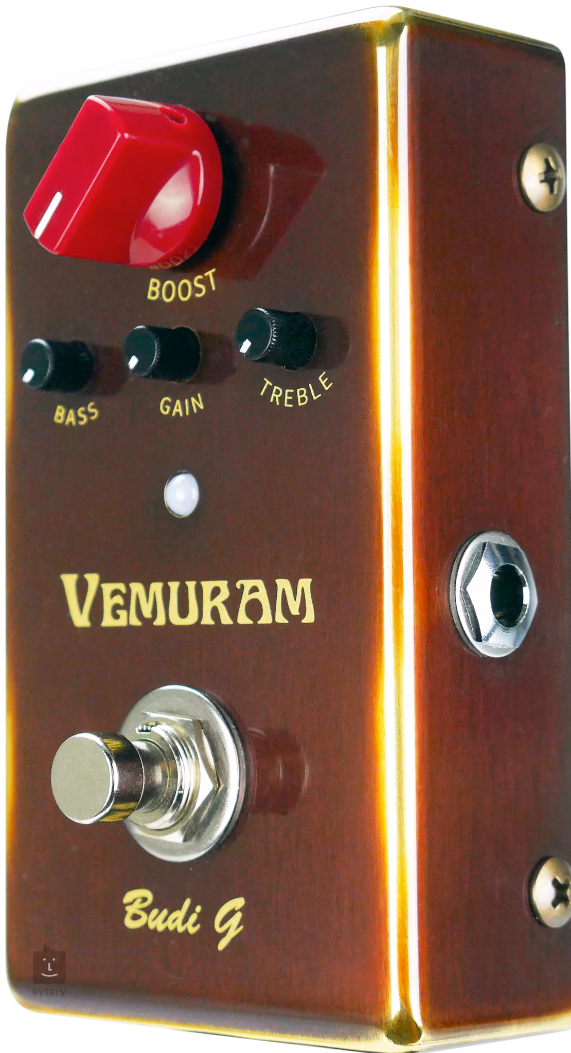 Vemuram Budi-G to wzmacniacz i subtelny overdrive, który może poprawić charakter brzmienia innych efektów w pedalboardzie. Posiada regulację poziomu wzmocnienia sygnału, dwupasmowy korektor EQ do precyzyjnego dostrojenia konfiguracji z urządzeniem oraz regulację poziomu przesterowania. Trymer Sat wstępnie ustawia poziom wzmocnienia.