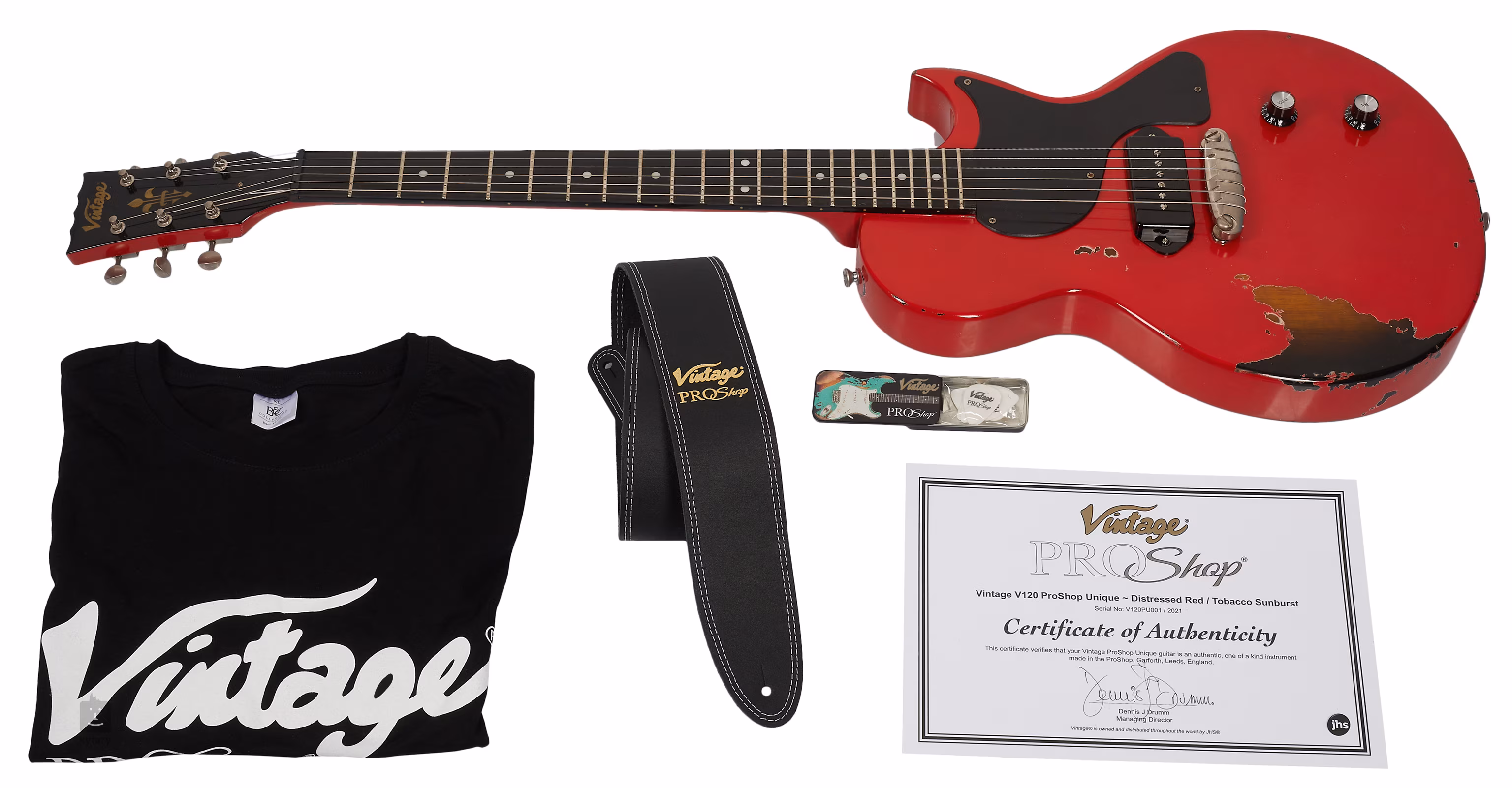 Vintage V120PU001 Proshop Distressed Red Tobacco Burst (rozpakowane)