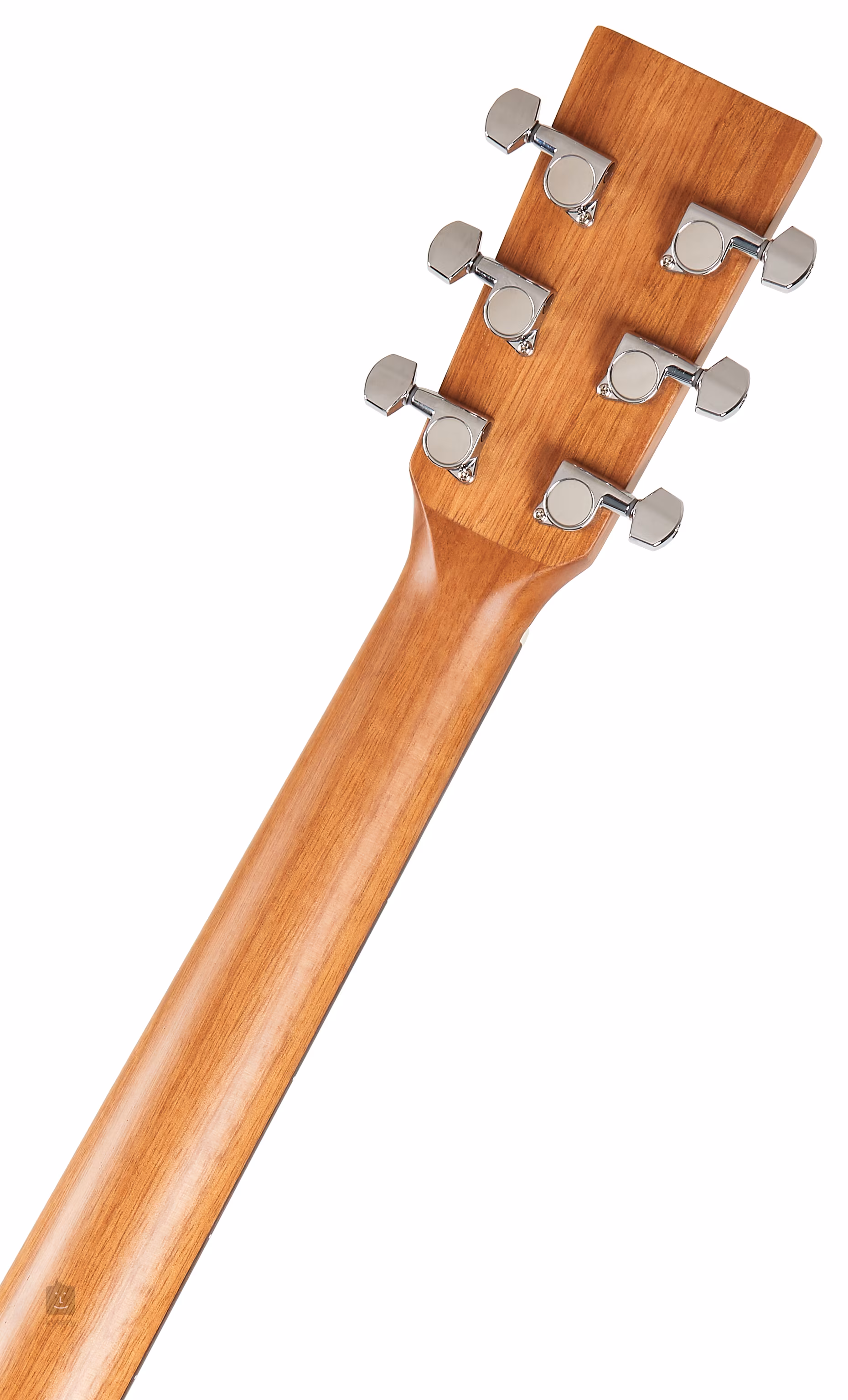 Struny osadzone są z jednej strony na palisandrowej podstrunnicy poprzez kompensowane siodełko, a z drugiej strony w wysokiej jakości chromowanych odlewanych ciśnieniowo automatach stroikowych. Stabilność strojenia i dobry sustain są w tym przypadku oczywiste. Stylowy wygląd instrumentu podkreśla ozdobna rozeta wokół płyty rezonansowej oraz logo firmy na główce.