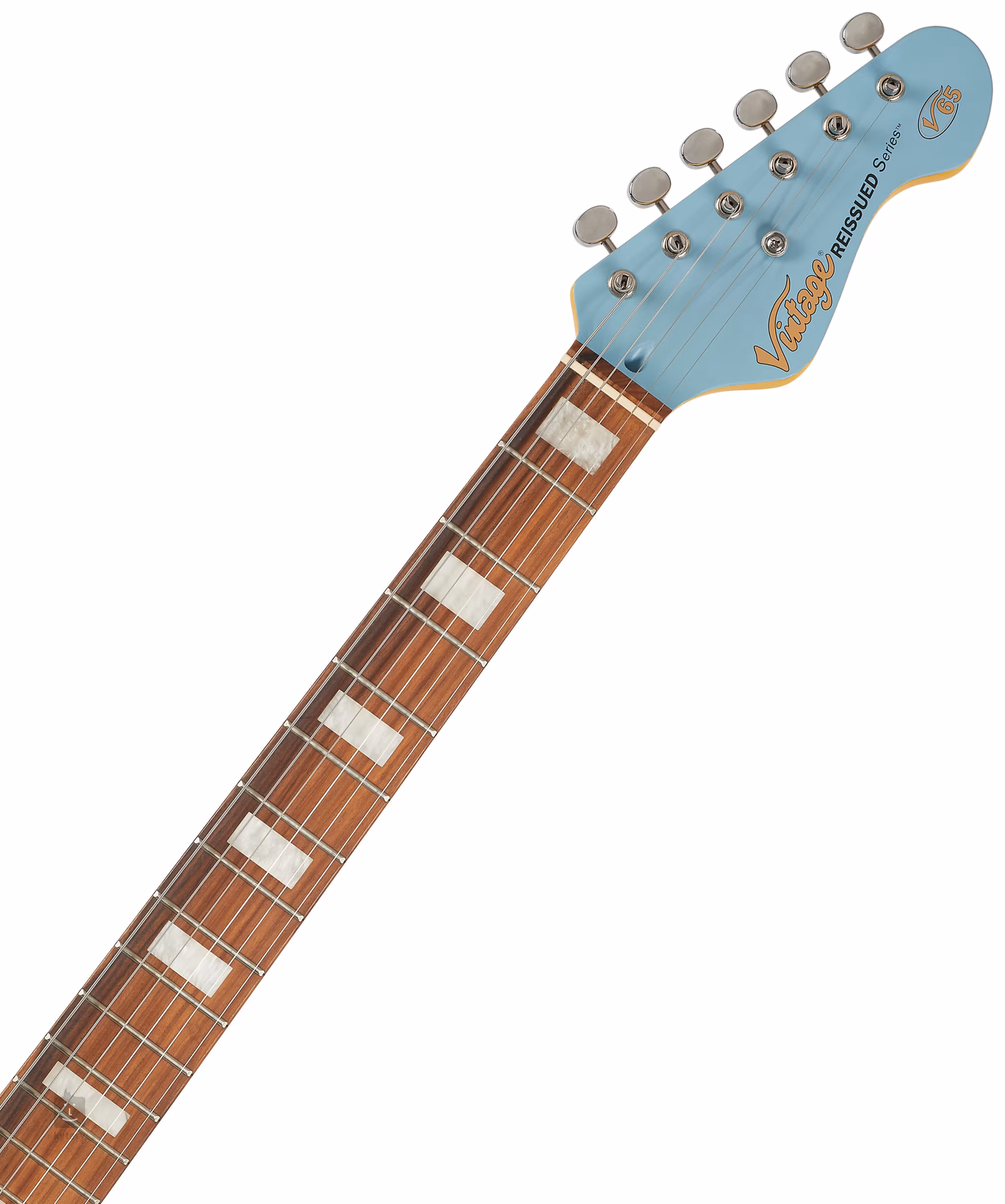 Gitara elektryczna VINTAGE V65HBL posiada klasyczny korpus typu offset, który z pewnością przypadnie do gustu zarówno początkującym, jak i doświadczonym gitarzystom. Olchowy korpus gitary ozdobiony jest wykończeniem Satin Blue. Palisandrowa podstrunnica wyposażona w dwadzieścia dwa progi Medium Jumbo i bloki pozycyjne jest przyklejona do przykręconej jednoczęściowej szyjki klonowej.